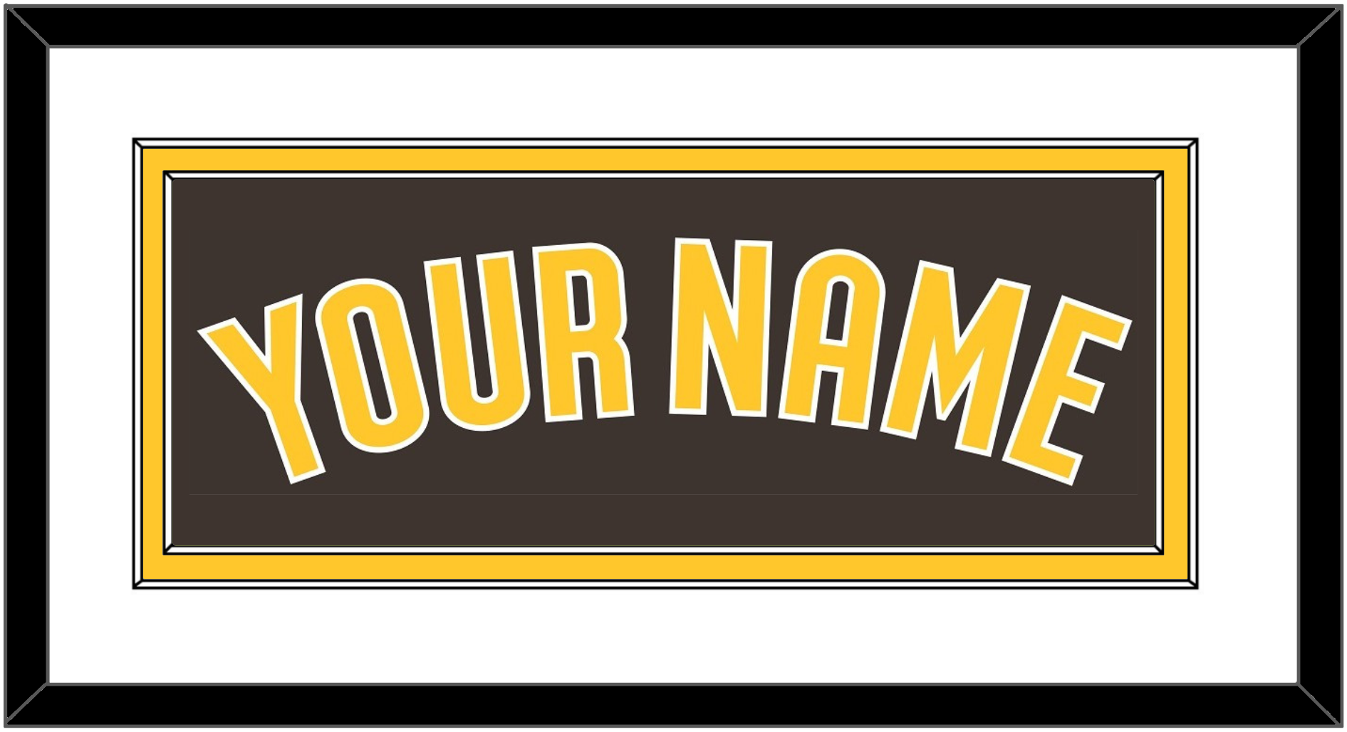 San Diego Alternate Brown Jersey Name. Double Mat: White Mat Over A Gold Mat. Gold Name Mounted On A Brown Mat. Black Frame.