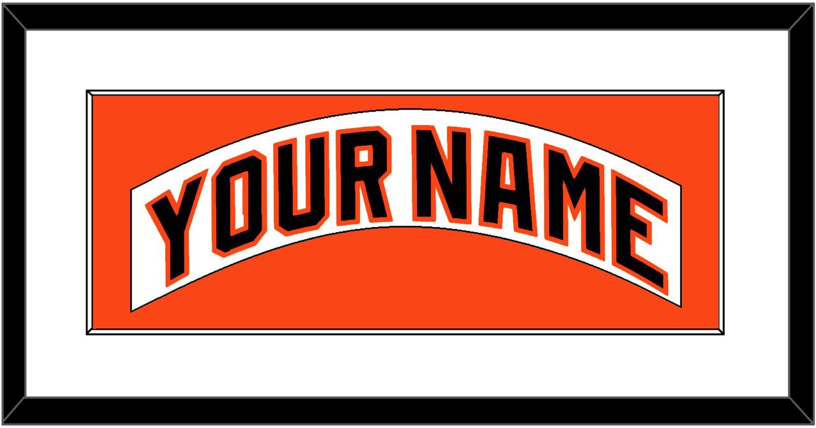 San Francisco Home White Jersey (1983 Through 1993) Nameplate. Single Mat: White Mat, White Nameplate Mounted On An Orange Mat. Black Frame.