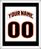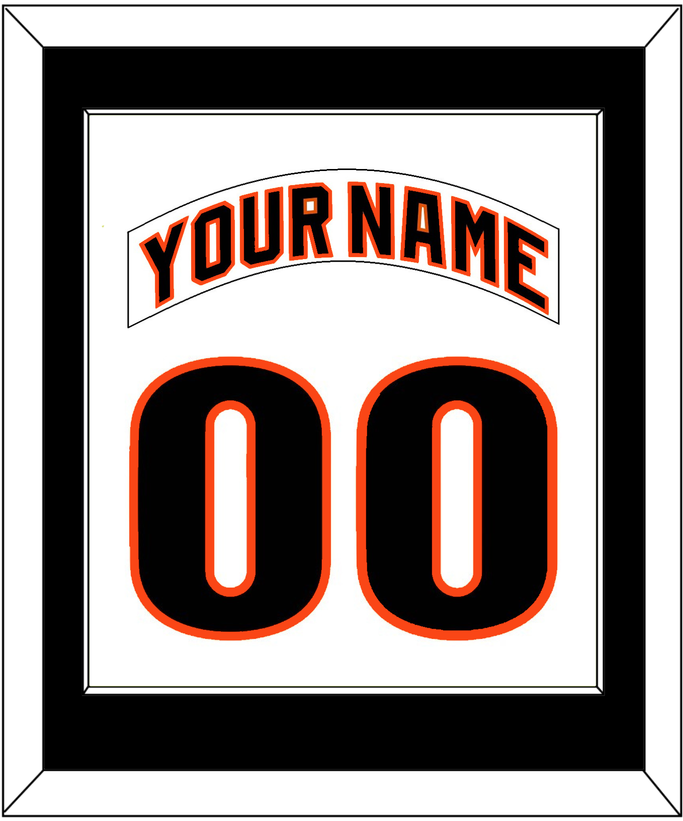 San Francisco Home White Jersey (1983 Through 1993) Nameplate & Number (From The Back Of The Jersey). Single Mat Cut: Black Mat With White Nameplate And Black Number Mounted On A White Mat. White Frame.