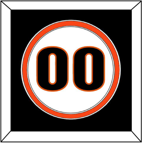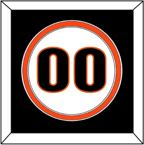 San Francisco Home White Jersey (1994 Through 1999) Number. Double Mat Cut: Black Mat Over An Orange Mat. Black Number Mounted On White Mat. White Frame.
