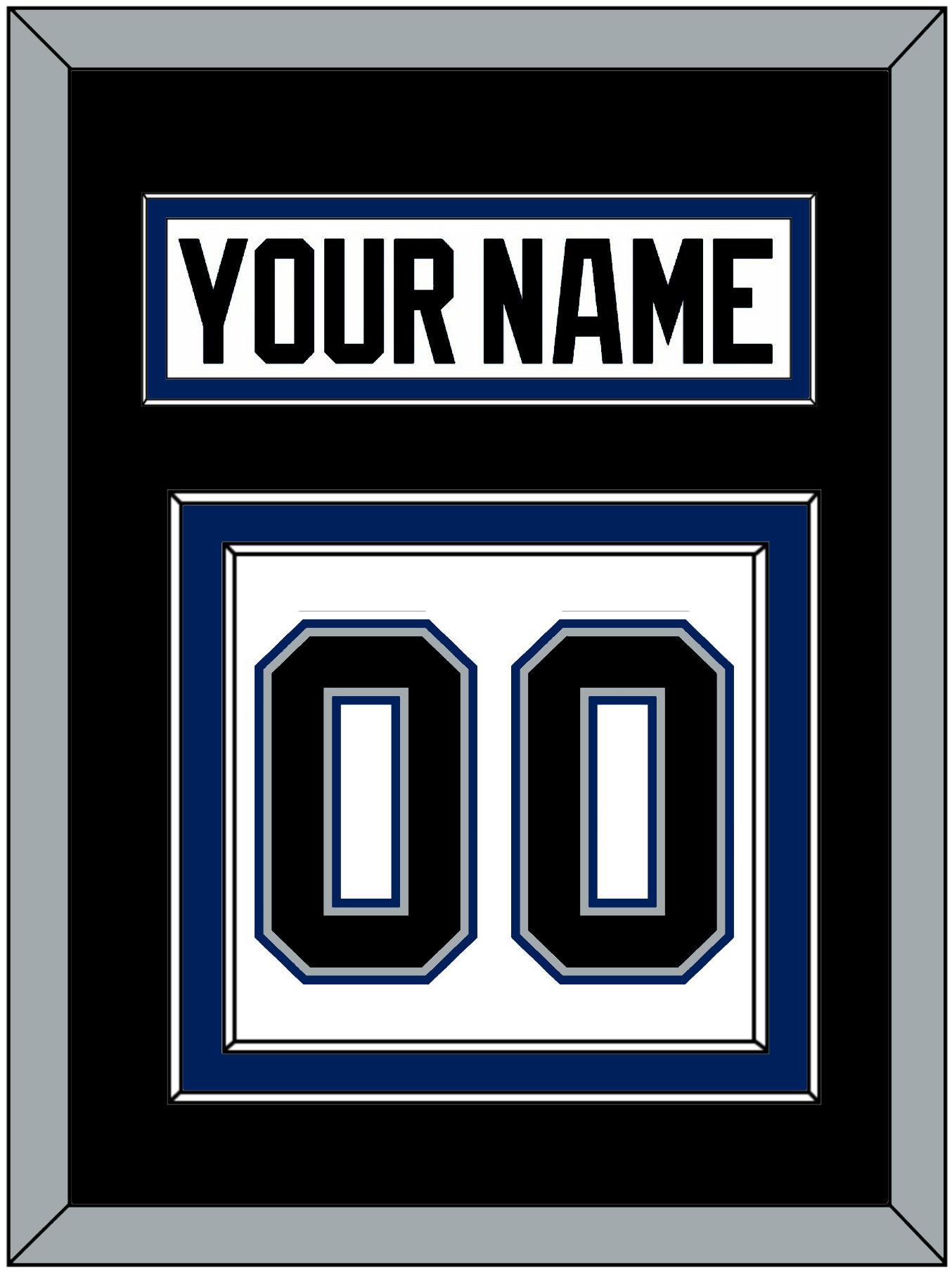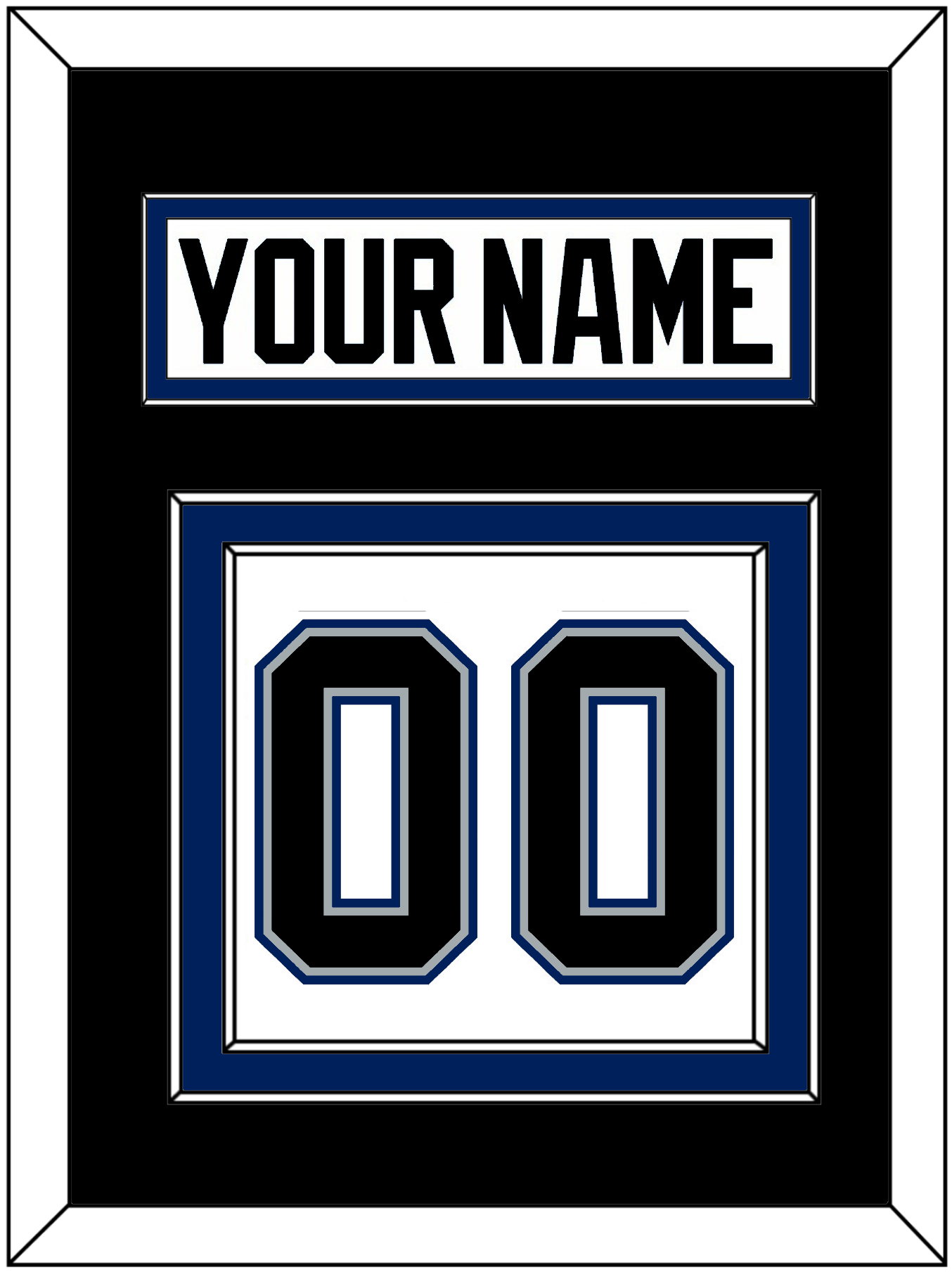 Tampa Bay Home White Jersey (2001 Through 2007) Nameplate & Numbers (From The Back Of The Jersey). Nameplate Is Single Mat Cut: Black Mat With White Nameplate Mounted On A Blue Mat. To Match The Jersey, Number Is Double Mat Cut: Black Mat Over A Blue Mat, Black Number Mounted On A White Mat. White Or Silver (Metal) Frame.