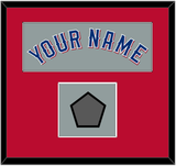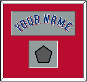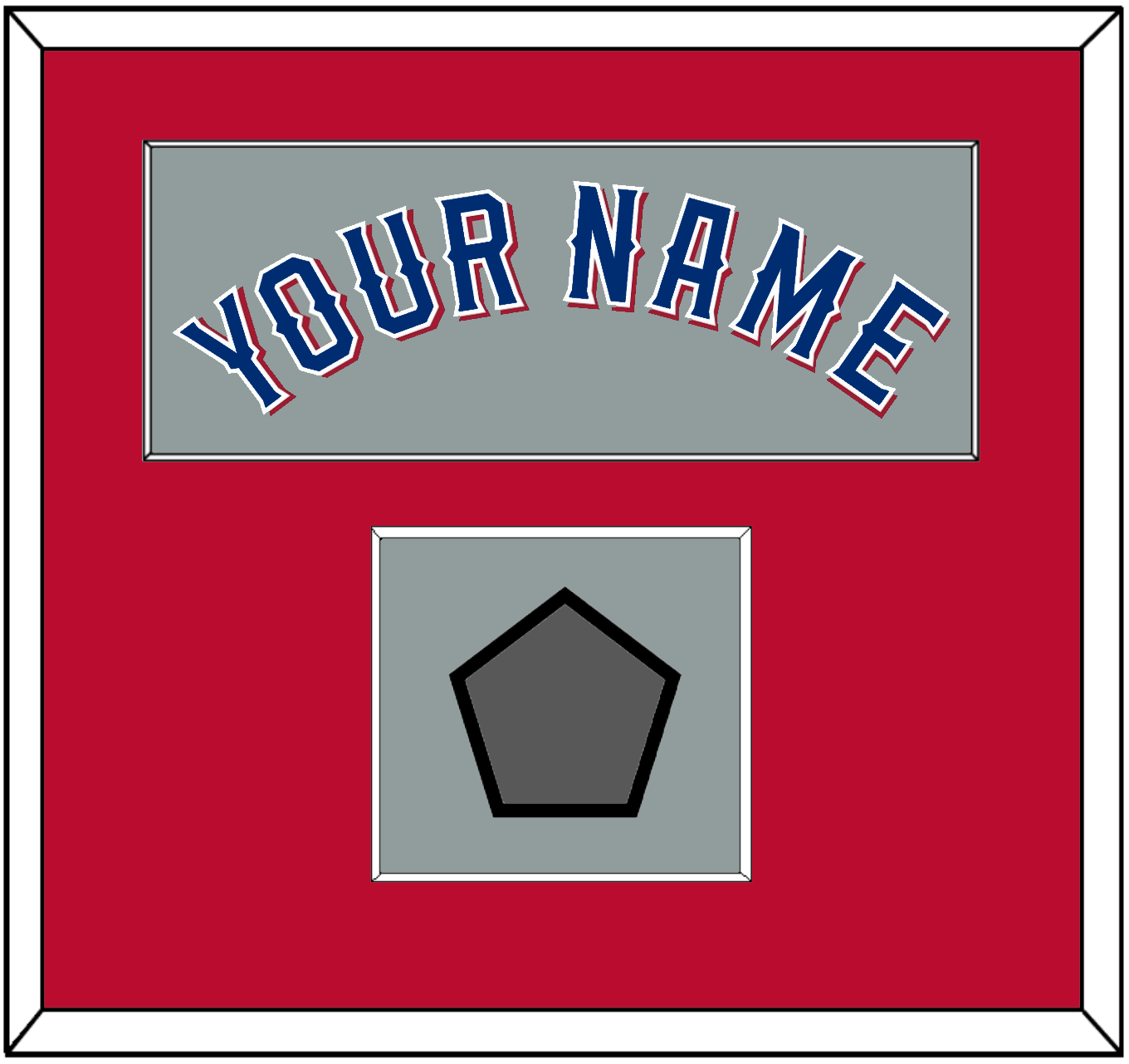 Texas Road Gray Jersey (2020 Through 2023) Name And World Series Champions Patch. Single Mat: Red Mat With Blue Name & Patch Mounted On A Gray Mat. White Or Black Frame.