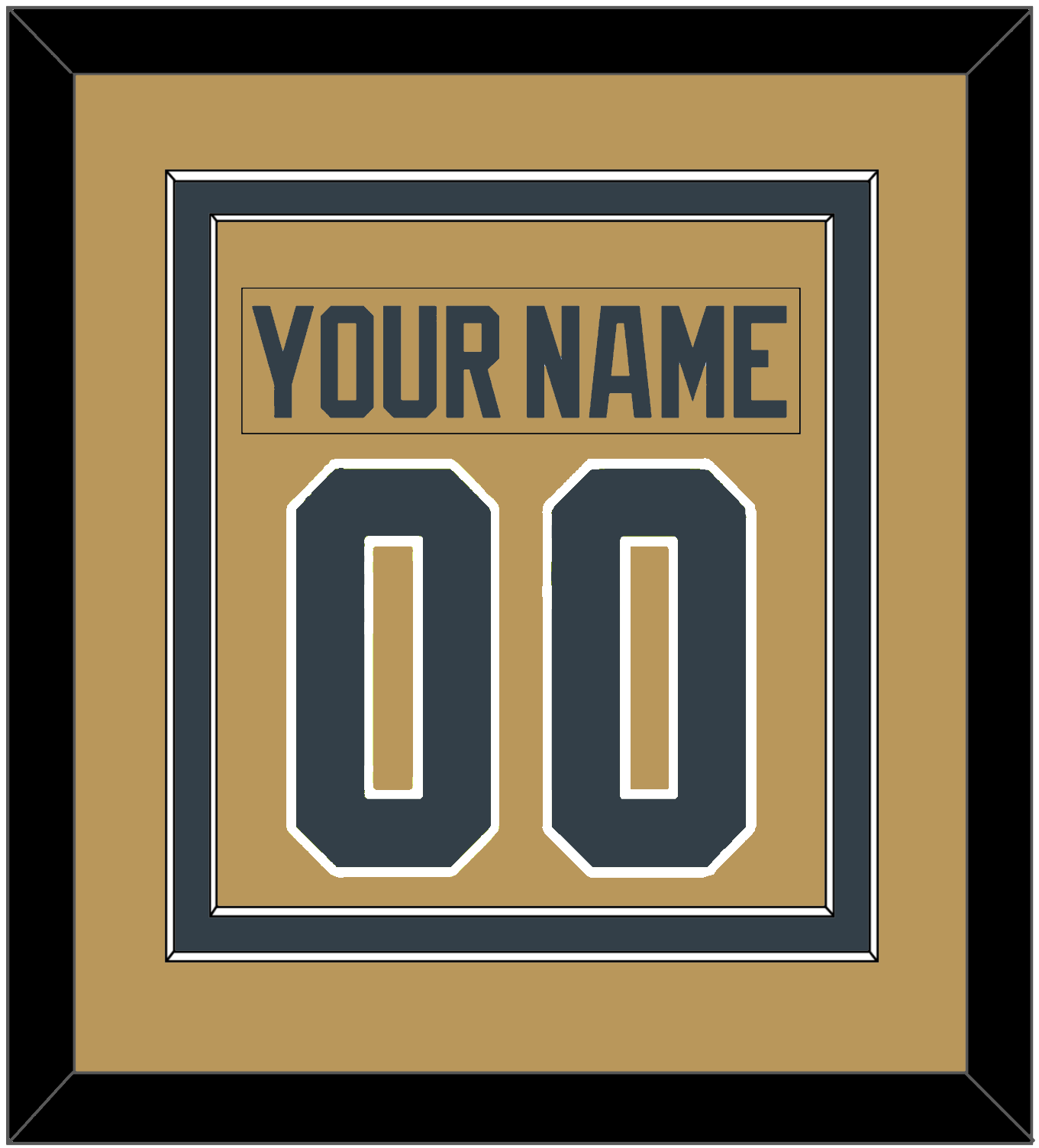 Vegas Alternate Gold Jersey Nameplate & Number (From The Back Of The Jersey). Double Mat Cut: Gold Mat Over A Steel Gray Mat. Gold Nameplate And Steel Gray Number Mounted On A Gold Mat. Black Or White Frame.