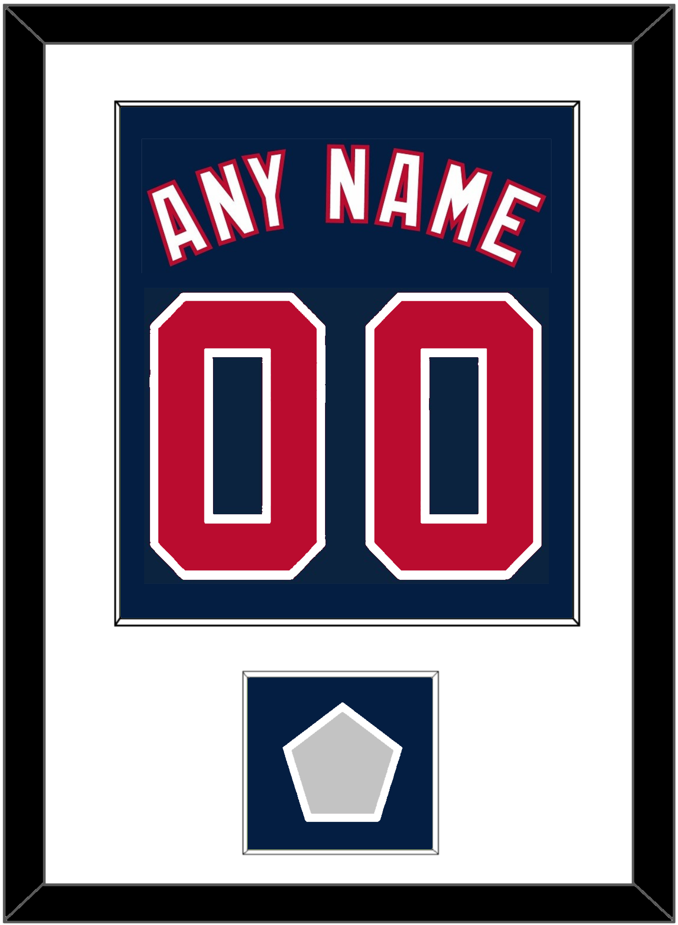 Washington Alternate Blue Jersey Name & Number With 2019 World Series Champions Patch. Single Mat Cut: White Mat With White Name, Red Number & Patch Mounted On A Blue Mat. Black Frame.