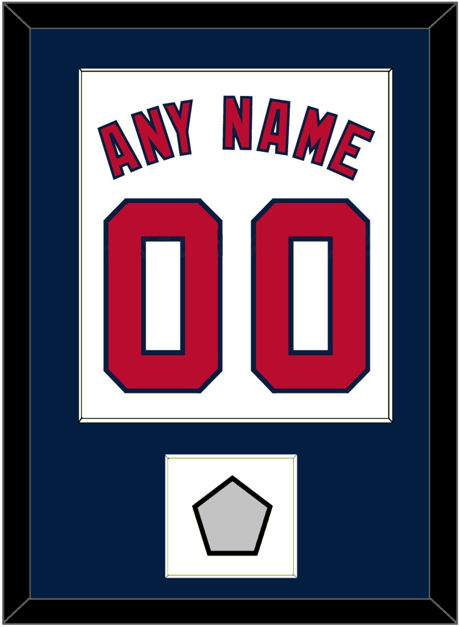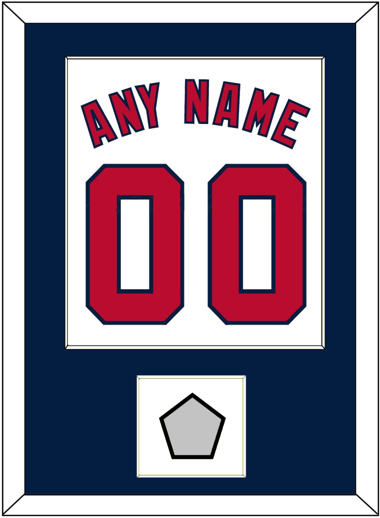 Washington Home White Jersey Name & Number With 2019 World Series Champions Patch. Single Mat Cut: Blue Mat With Red Name, Number & Patch Mounted On A White Mat. White Or Black Frame.