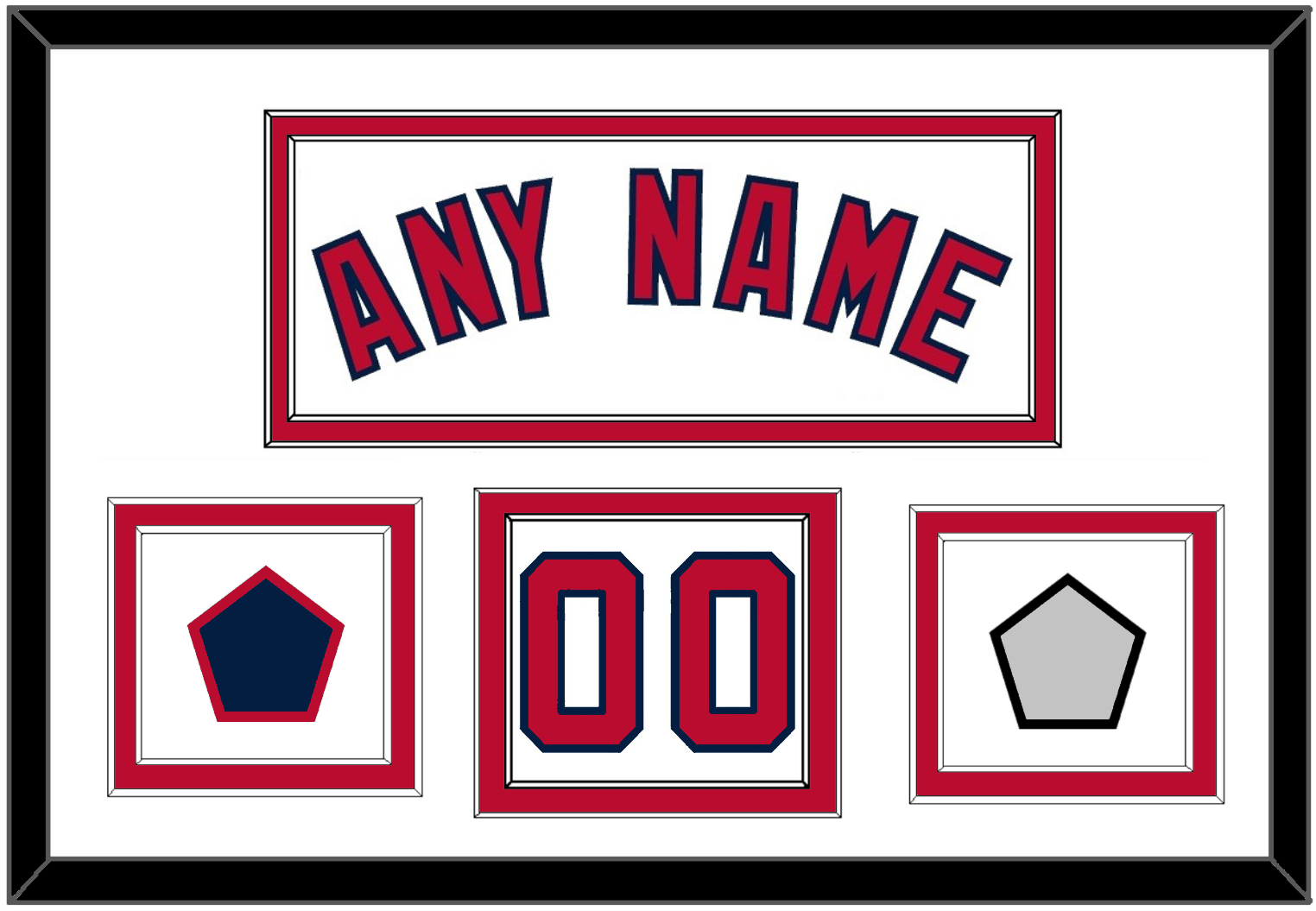 Washington Home White Jersey Name, Small Number(s) From Front Of Jersey, 2019 World Series Jersey Patch & Team Logo Shoulder Patch. Double Mat Cut: White Mat Over A Red Mat. Red Name, Numbers & Patches Are Mounted On A White Mat. Black Frame.