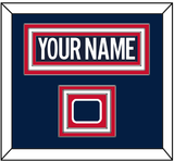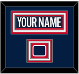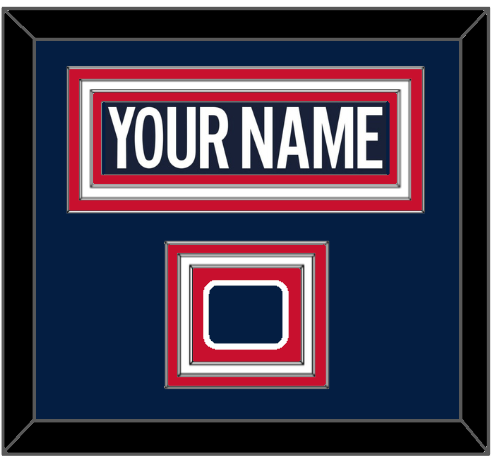 Washington 2018 Stadium Series Blue Jersey Nameplate & Game Jersey Patch. The Nameplate Is Triple Mat Cut: Blue Mat Over A Red Mat Over A White Mat. Blue Nameplate & Patch Mounted On Red Mat. White Or Black Frame.