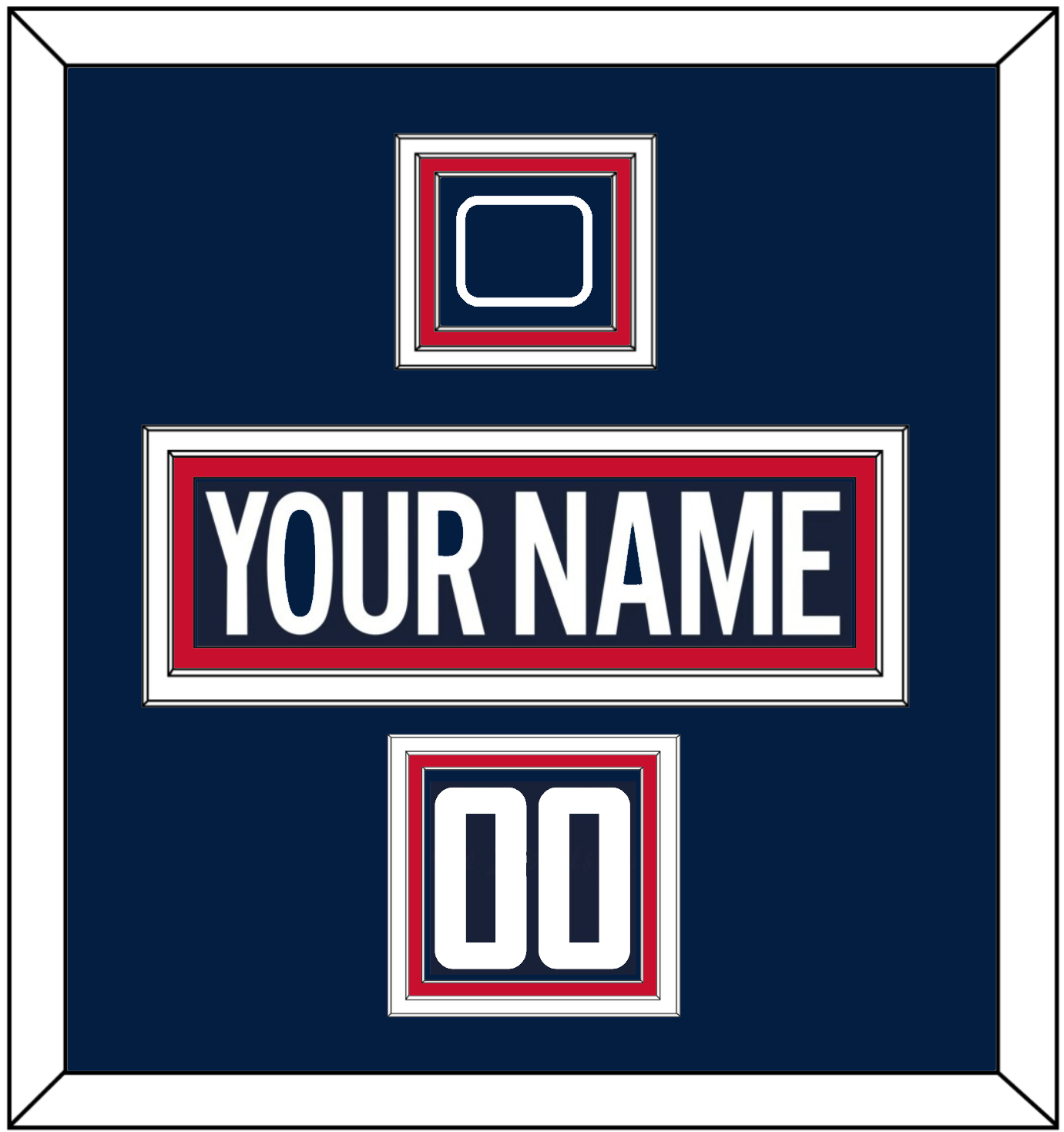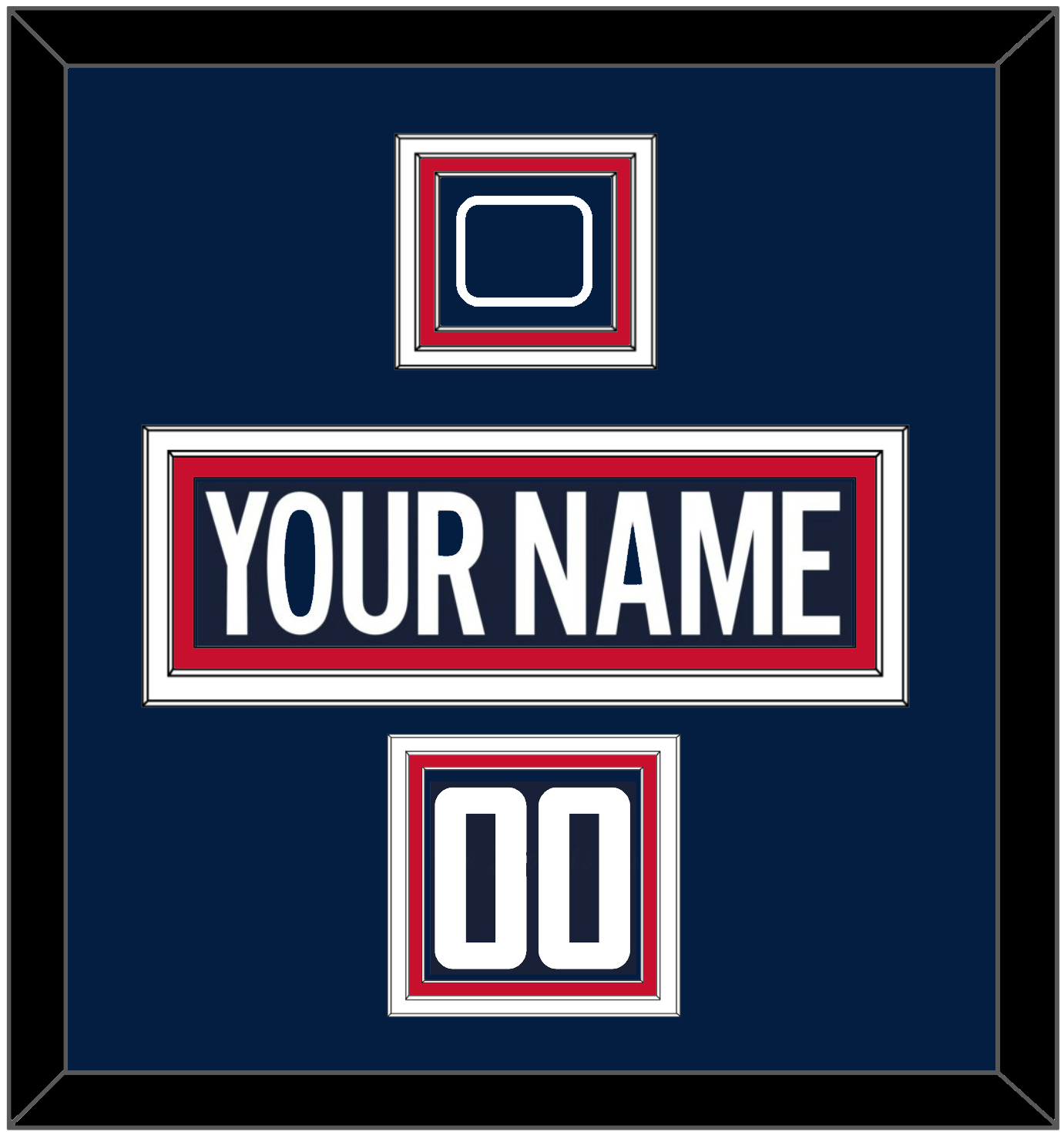 Washington 2018 Stadium Series Blue Jersey, Number(s) From Shoulder, & Jersey Logo Patch From Shoulder. The Nameplate Is Double Mat Cut: Blue Mat Over A White Mat, Blue Nameplate Mounted On A Red Mat. To Match The Jersey, The Numbers & Patch Are Triple Mat Cut: Blue Mat Over A White Mat Over A Red Mat, White Numbers & Patch Mounted On A Blue Mat. White Or Black Frame.
