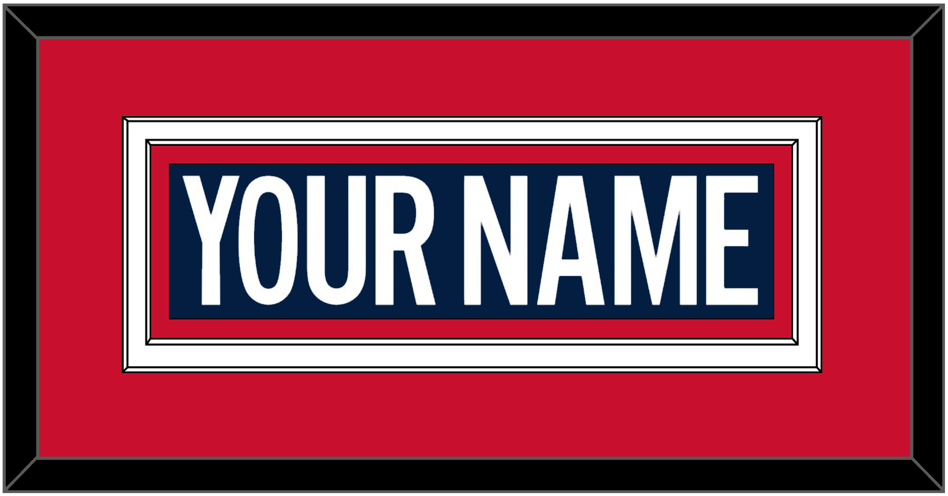 Washington Alternate Blue Jersey (2018 Through 2024) Nameplate. Double Mat: Red Mat Over A White Mat, Blue Nameplate Mounted On Red Mat. White Or Black Frame.