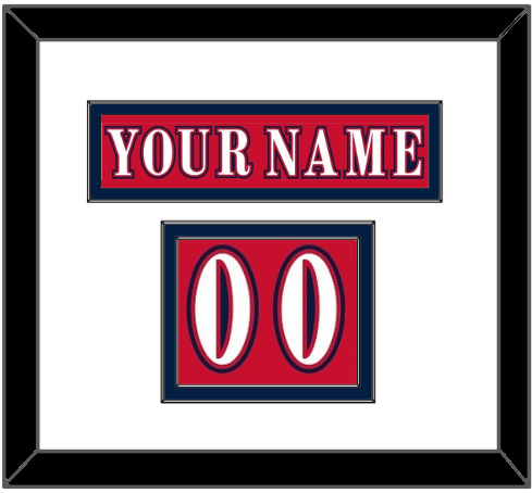 Washington Reverse Retro Red Jersey (2020 Through 2021) Nameplate & Numbers From Shoulder - The Nameplate Is Single Mat Cut: Red Nameplate Mounted On Blue Mat. To Match The Jersey, The Numbers Are Double Mat Cut: White Mat Over A Blue Mat White Numbers Mounted On A Red Mat. Black Frame.