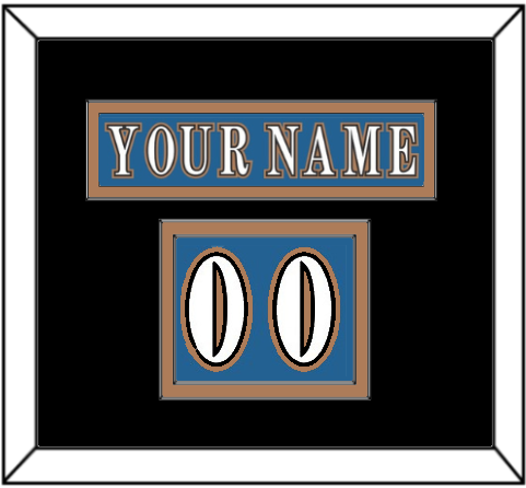 Washington Road Blue Jersey (1995 Through 2000) Nameplate & Numbers From Shoulder - The Nameplate Is Single Mat Cut:  Blue Nameplate Mounted On Bronze Mat.  To Match The Jersey, The Numbers Are Double Mat Cut:  Black Mat Over A Bronze Mat.  White Numbers Mounted On A Blue Mat.  White Frame.