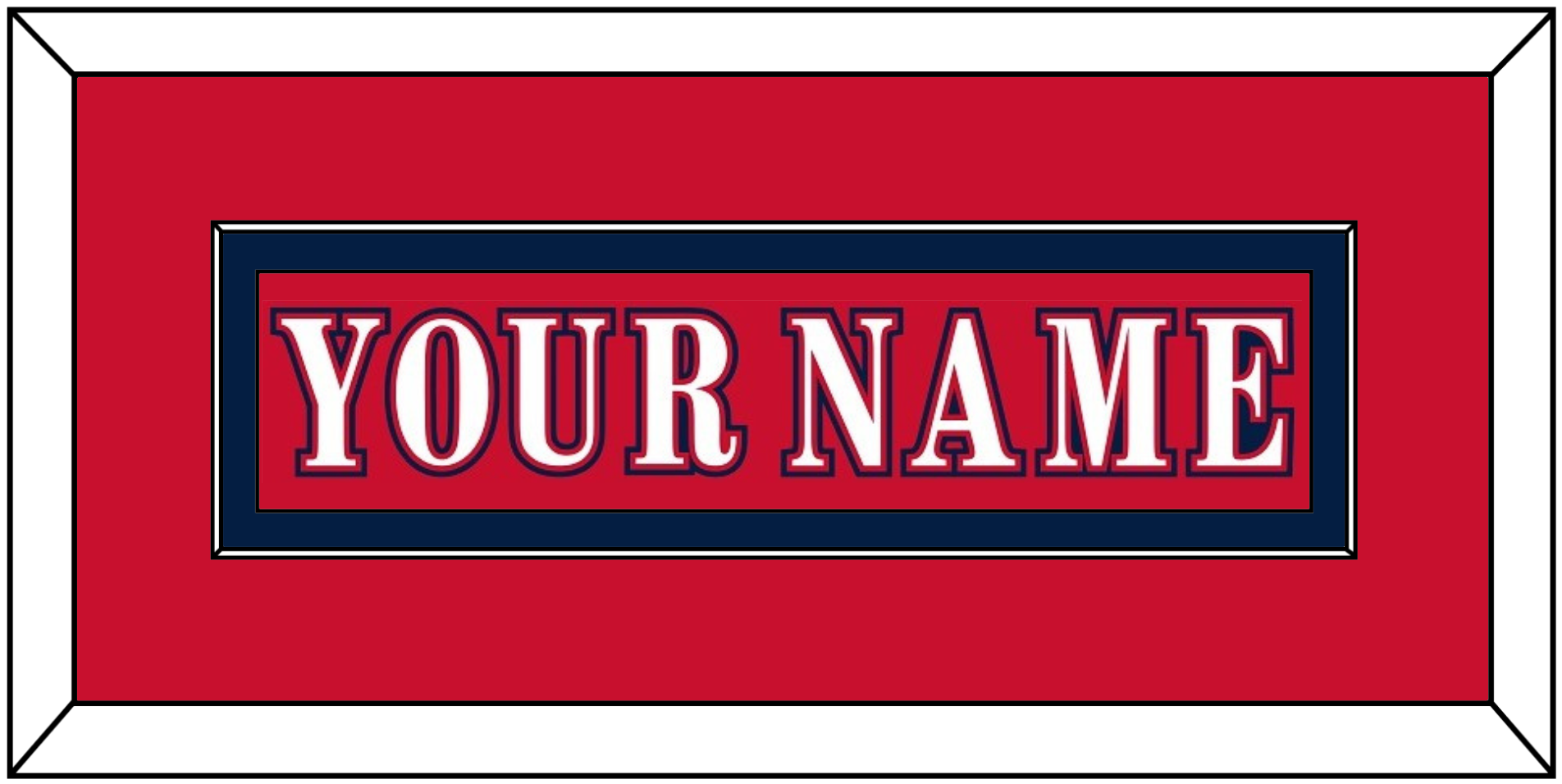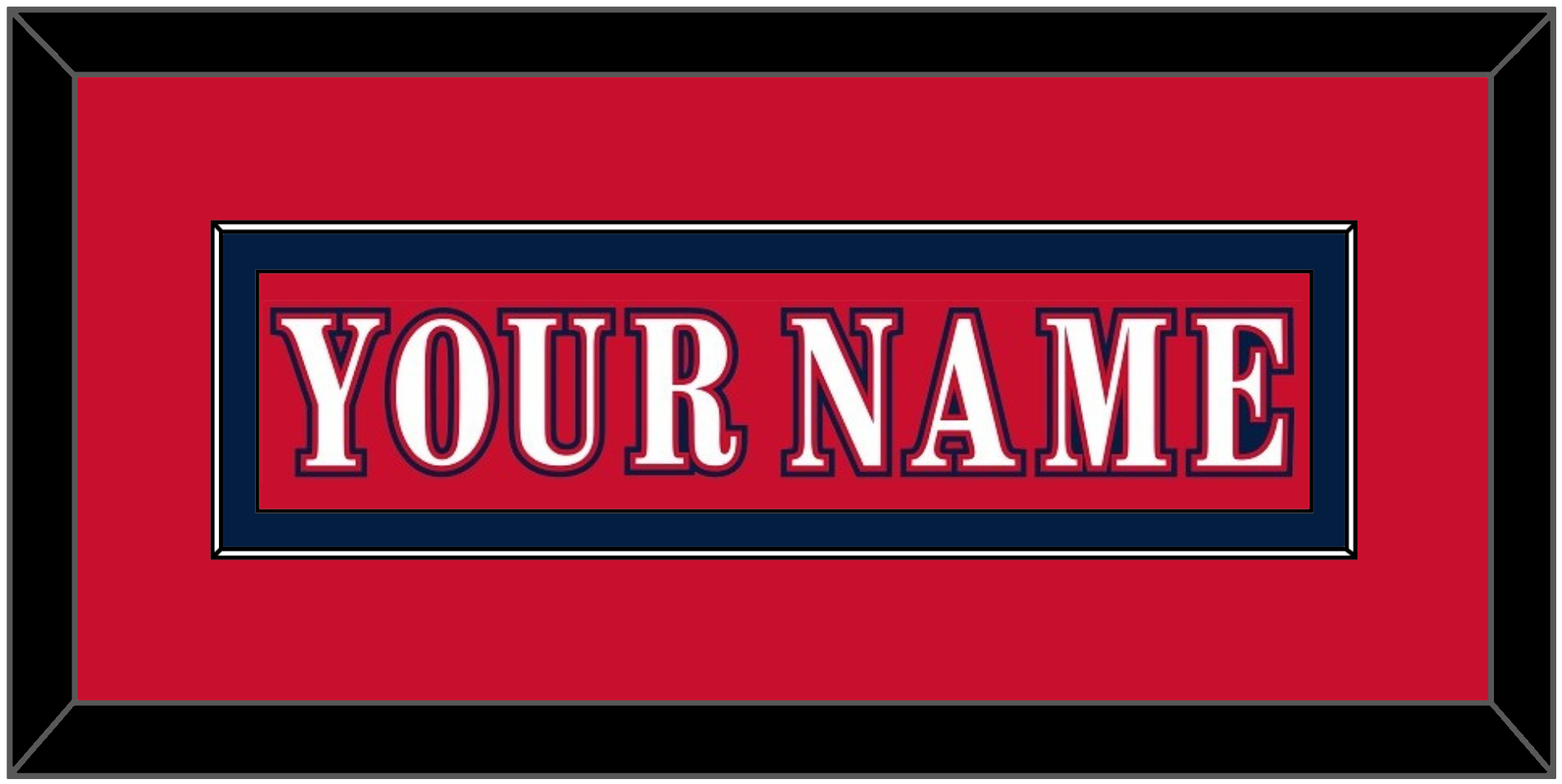 Washington Reverse Retro Red Jersey (2020 Through 2021) Nameplate. Single Mat: Red Mat, Nameplate Mounted On Blue Mat. Black Or White Frame.