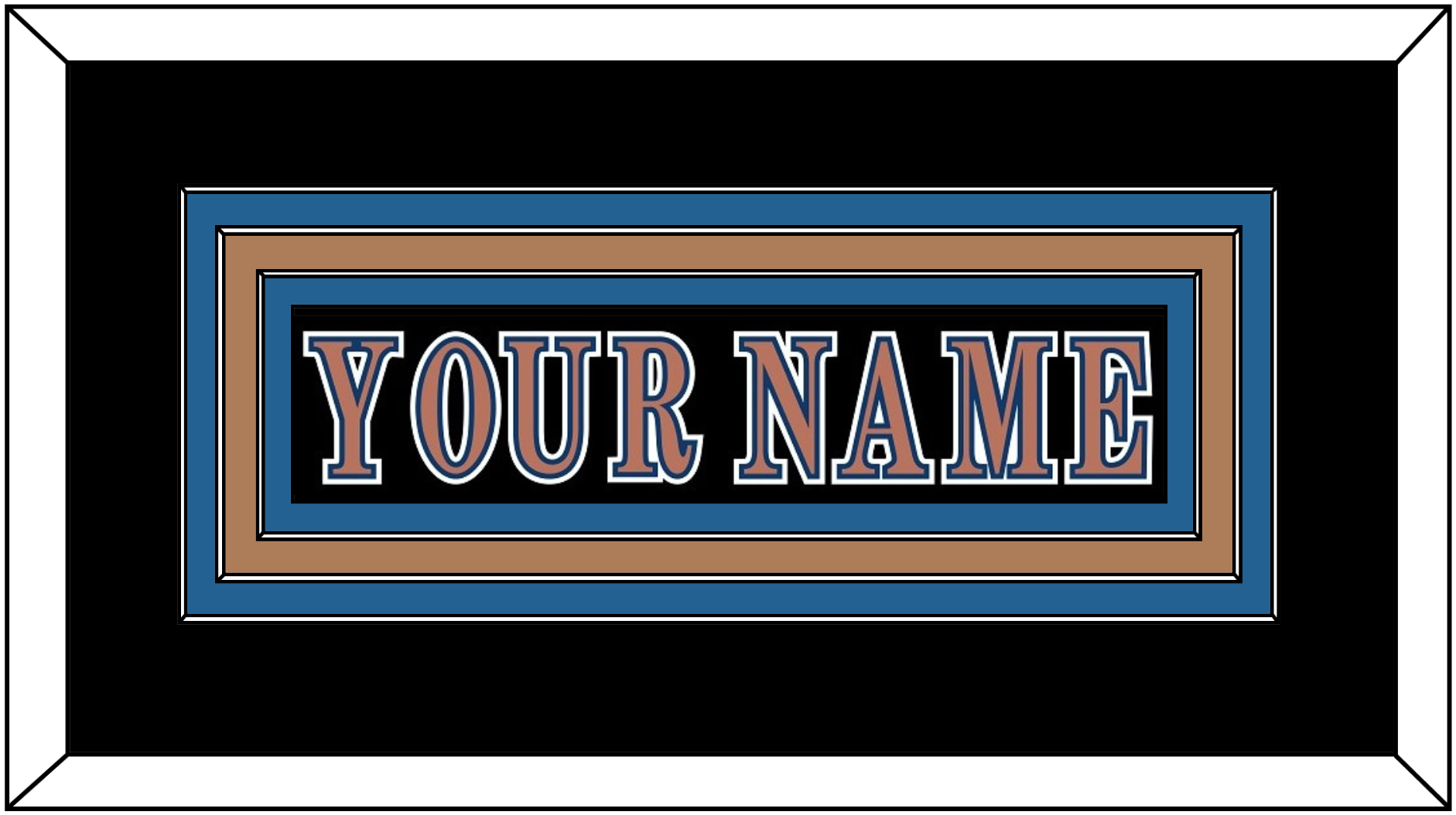 Washington Road Black Jersey (1997 Through 2007) Nameplate. Triple Mat: Black Mat Over A Blue Mat Over A Bronze Mat, Black Nameplate Mounted On Blue Mat. White Frame.
