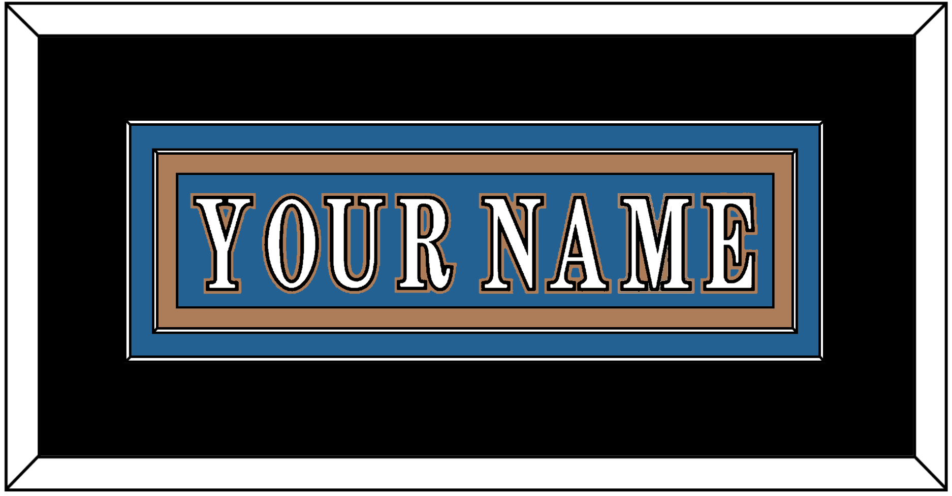 Washington Road Blue Jersey (1995 Through 2000) Nameplate. Double Mat: Black Mat Over A Blue Mat, Blue Nameplate Mounted On Bronze Mat. White Frame.