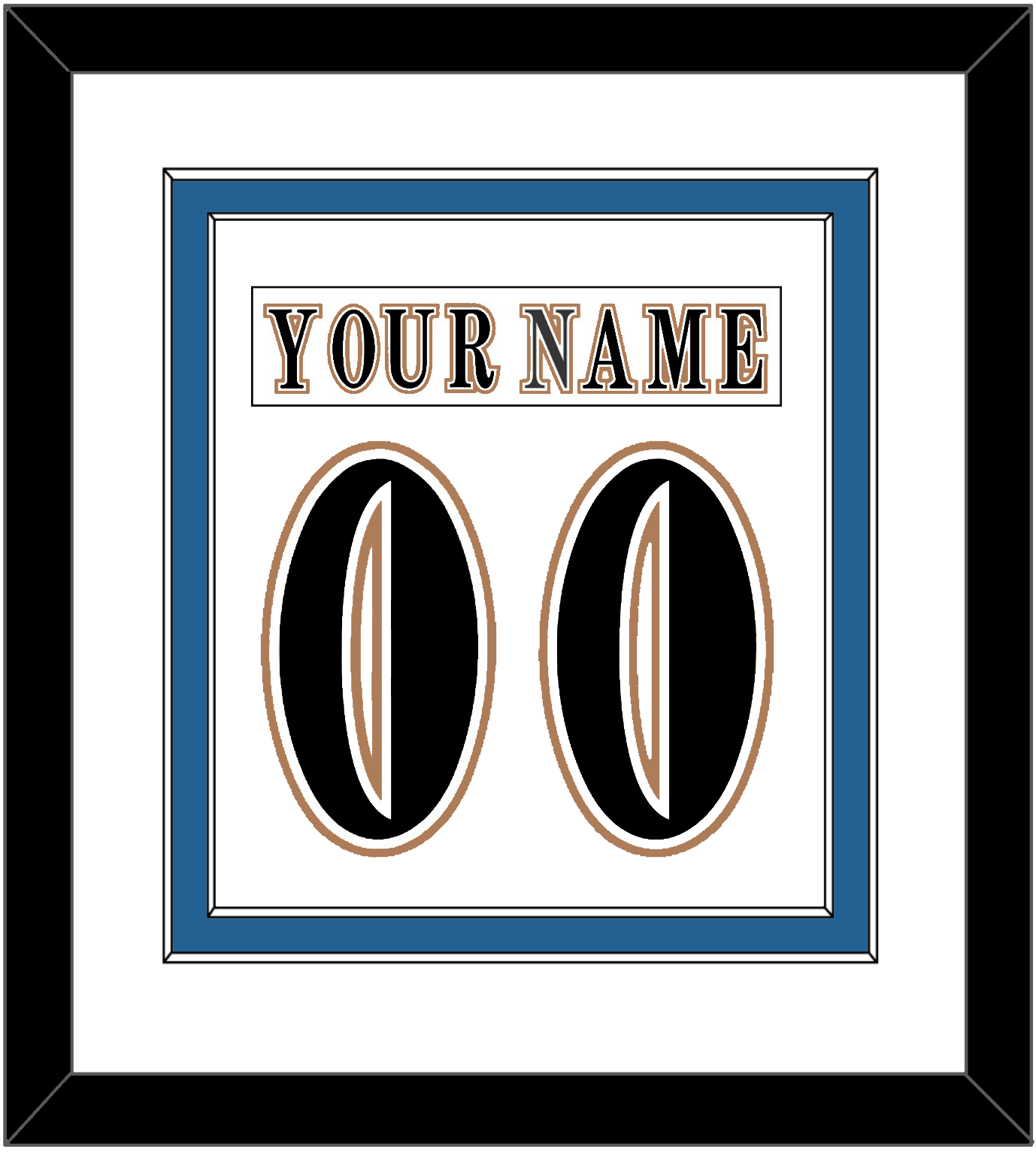 Washington Home White Jersey (1995 Through 2007) Nameplate & Number (From The Back Of The Jersey). Double Mat Cut: White Mat Over A Blue Mat. White Nameplate And Black Number Mounted On A White Mat. Black Frame.