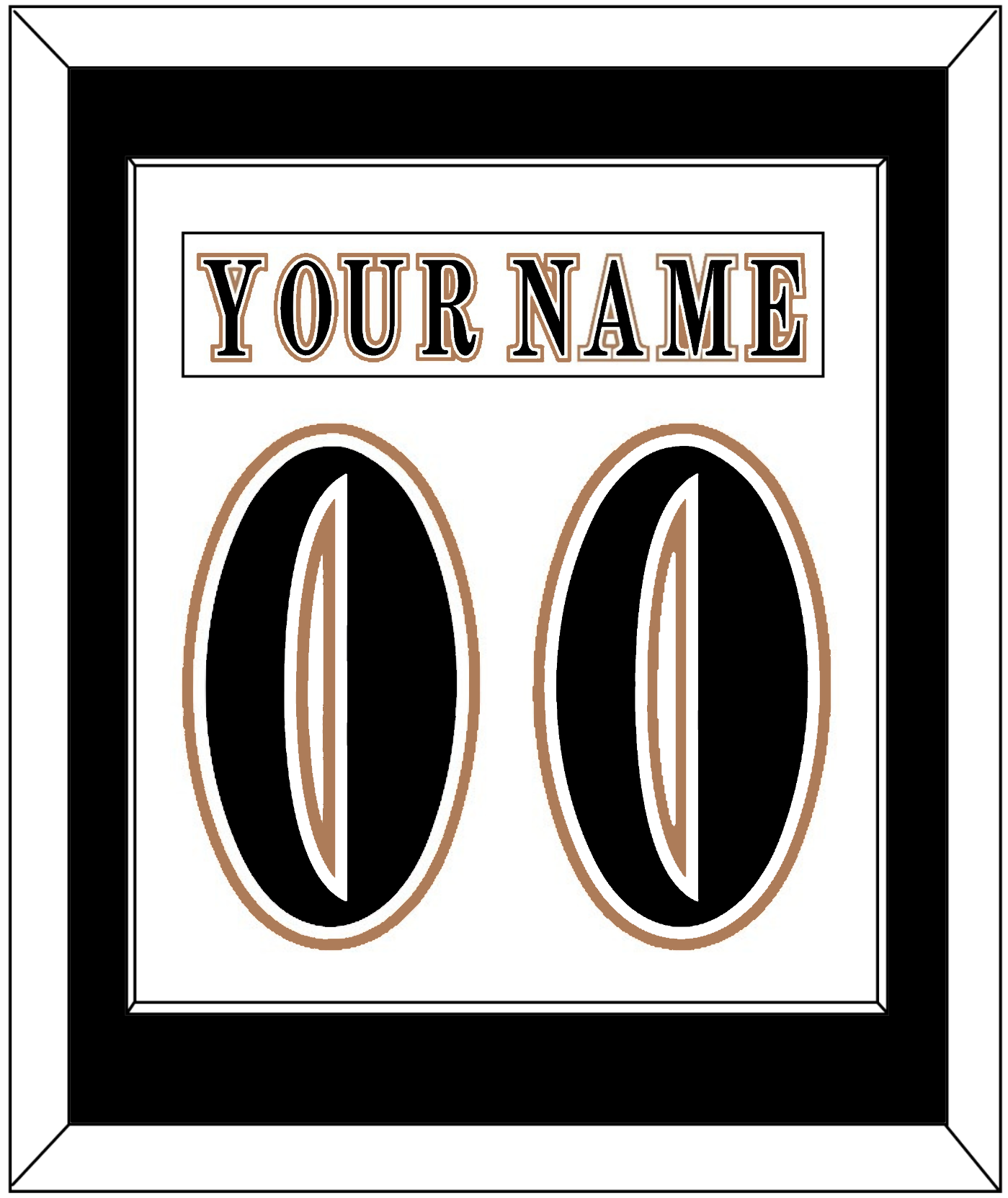 Washington Home White Jersey (1995 Through 2007) Nameplate & Number (From The Back Of The Jersey). Single Mat Cut: Black Mat With White Nameplate And Black Number Mounted On A White Mat. White Frame.