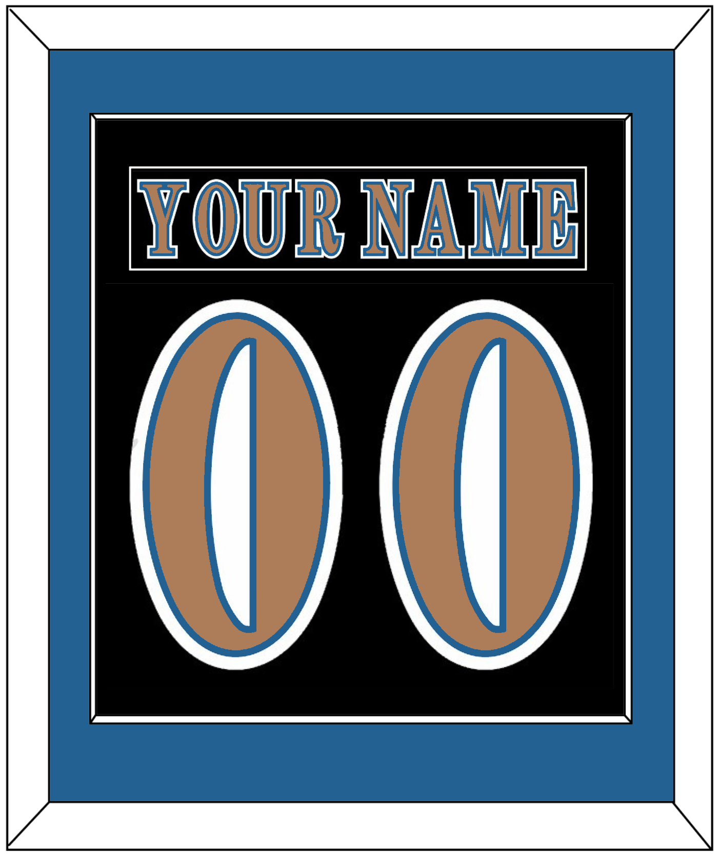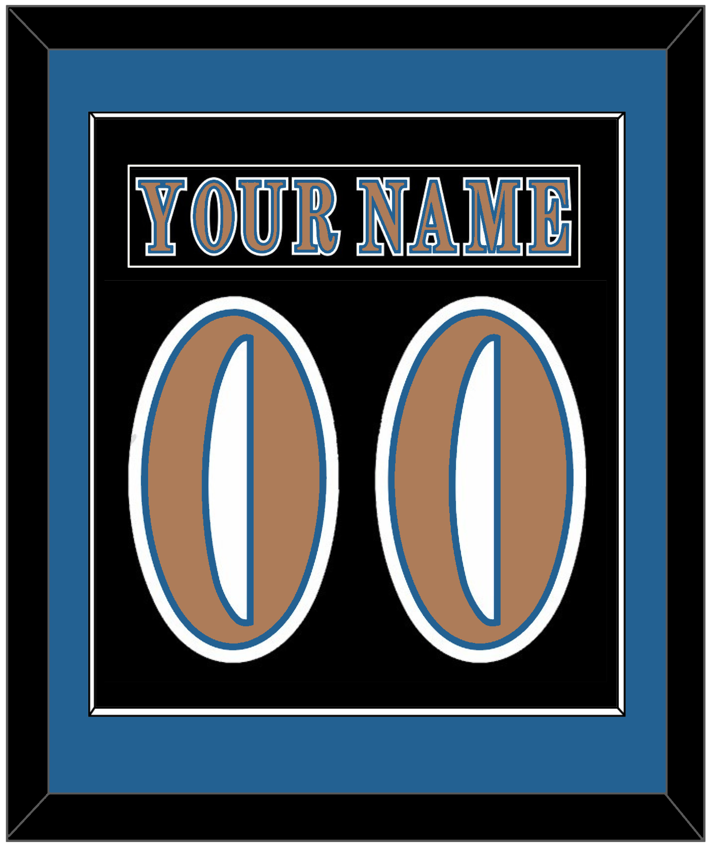Washington Road Black Jersey (1997 Through 2007) Nameplate & Number (From The Back Of The Jersey). Single Mat Cut: Blue Mat With Black Nameplate And Bronze Number Mounted On A White Mat. Black Or White Frame.