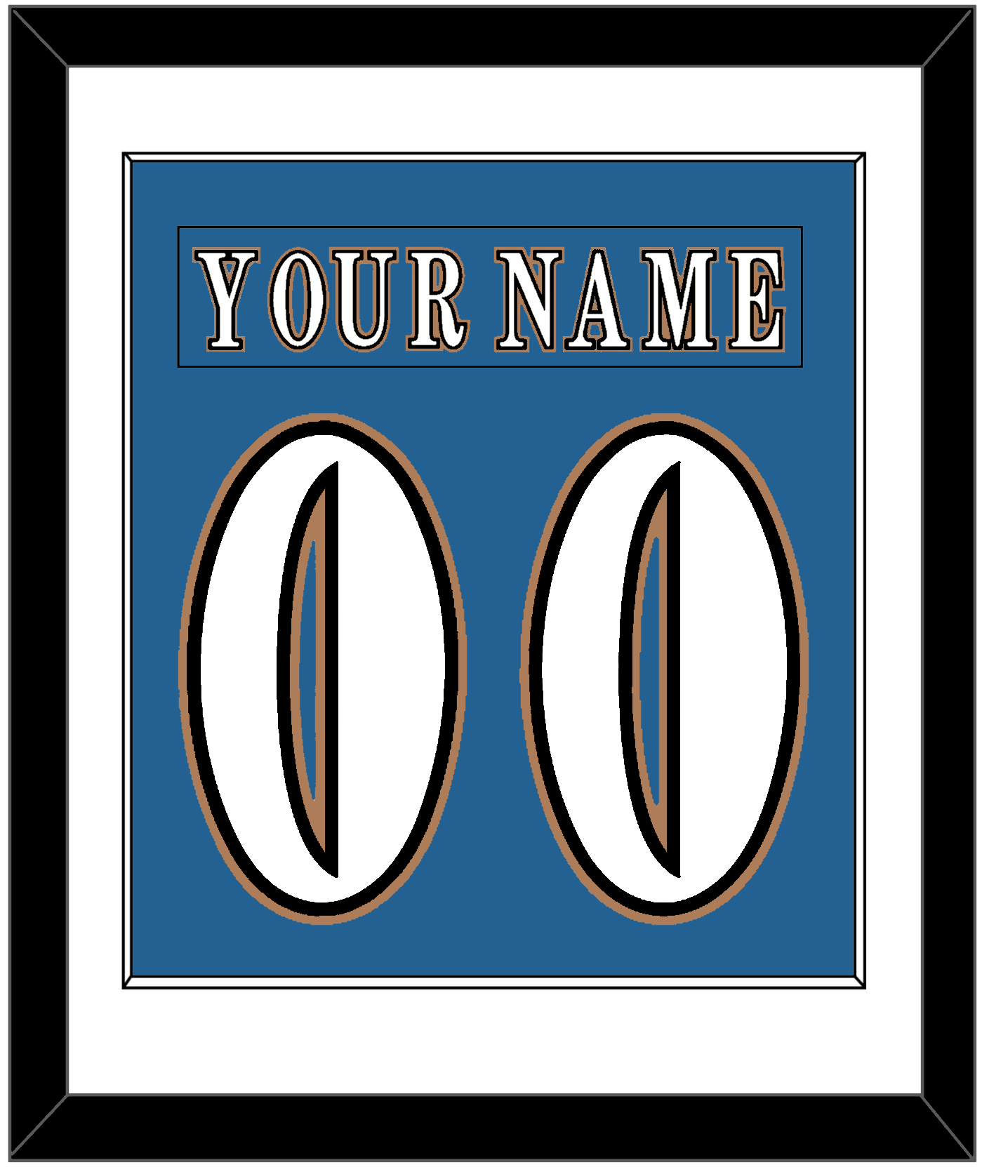 Washington Road Blue Jersey (1995 Through 2000) Nameplate & Number (From The Back Of The Jersey). Single Mat Cut: White Mat With Blue Nameplate And White Number Mounted On A Blue Mat. Black Frame.