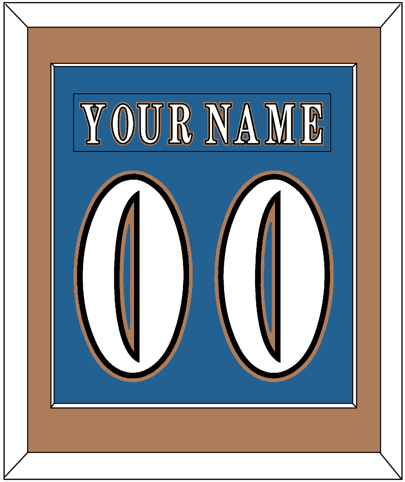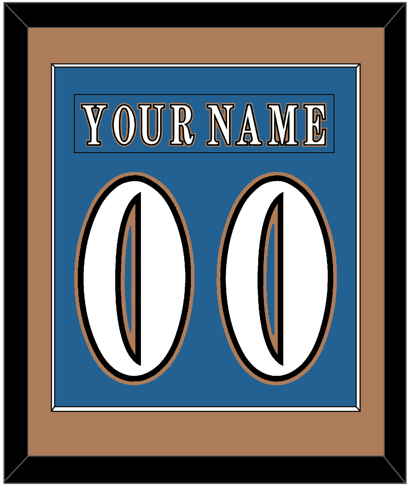 Washington Road Blue Jersey (1995 Through 2000) Nameplate & Number (From The Back Of The Jersey).  Single Mat Cut:  Bronze Mat With Blue Nameplate And White Number Mounted On A Blue Mat.  Black Or White Frame.