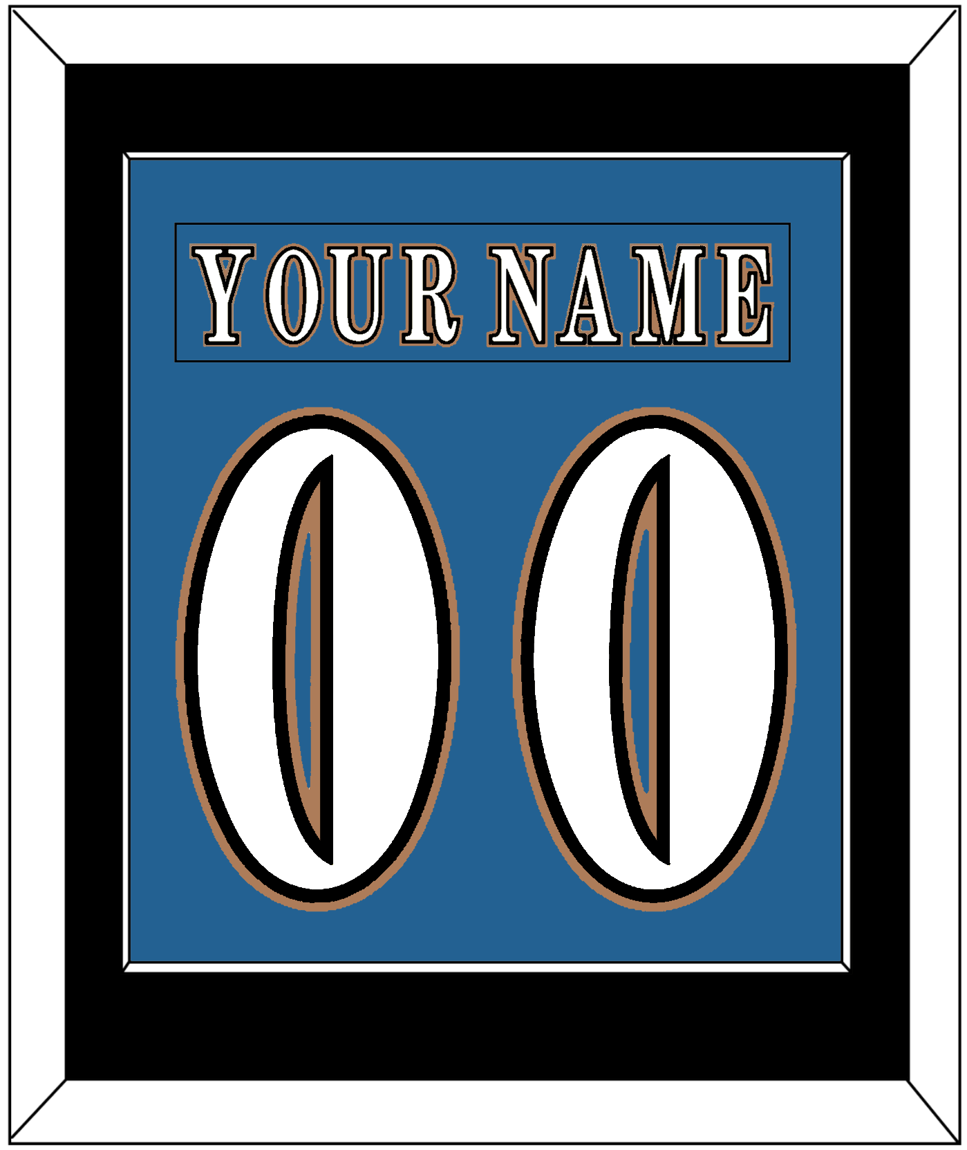 Washington Road Blue Jersey (1995 Through 2000) Nameplate & Number (From The Back Of The Jersey).  Single Mat Cut:  Black Mat With Blue Nameplate And White Number Mounted On A Blue Mat.  White Frame.