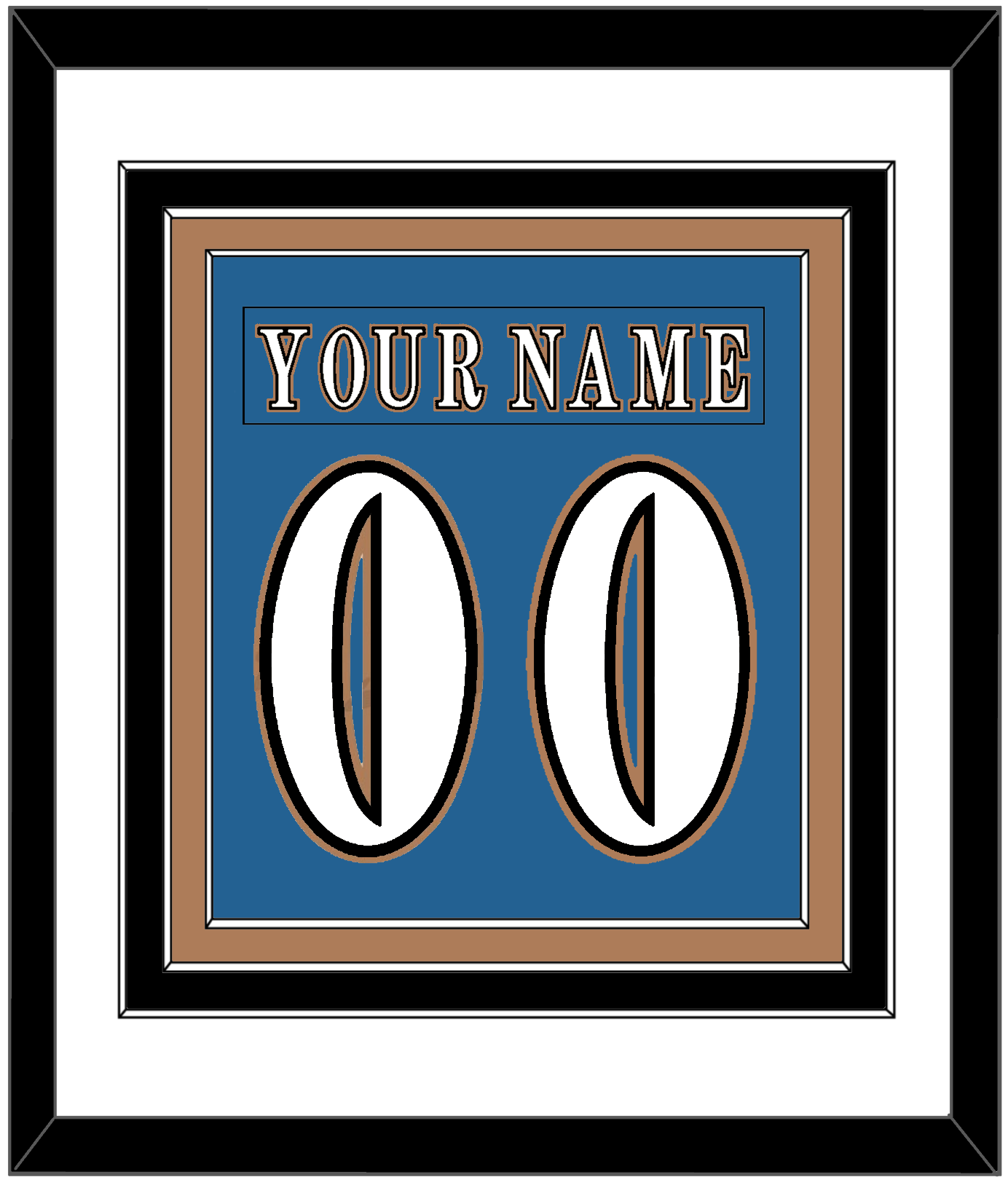 Washington Road Black Jersey (1995 Through 2000) Nameplate & Number (From The Back Of The Jersey). Triple Mat Cut: White Mat Over A Black Mat Over A Bronze Mat. Blue Nameplate And White Number Mounted On A Blue Mat. Black Frame.