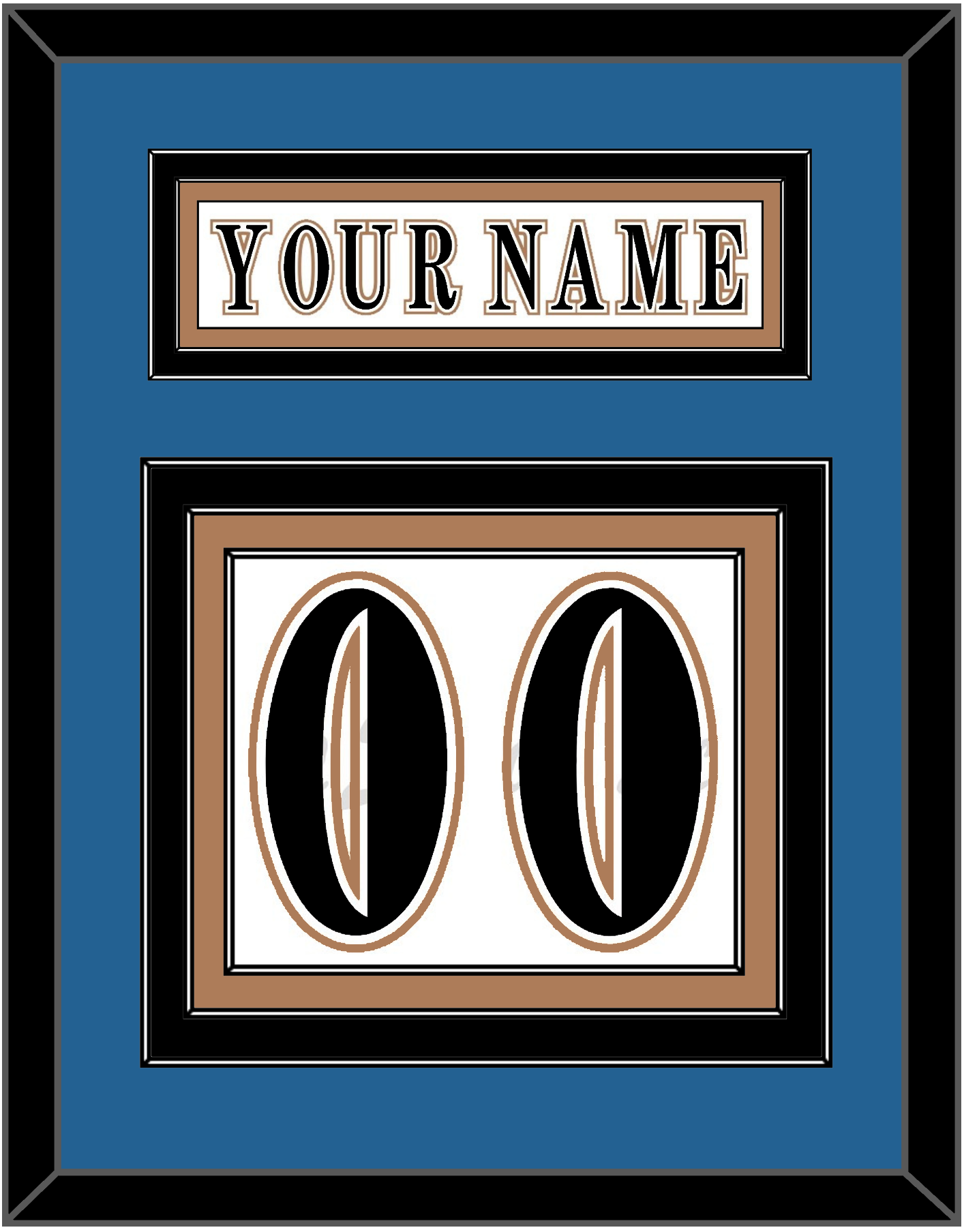 Washington Home White Jersey (1995 Through 2007) Nameplate & Numbers (From The Back Of The Jersey). Nameplate Is Double Mat Cut: Blue Mat Over A Black Mat. White Nameplate Mounted On A Bronze Mat. To Match The Jersey, Number Is Triple Mat Cut: Blue Mat Over A Black Mat Over A Bronze Mat. Black Number Mounted On A White Mat. Black Or White Frame.