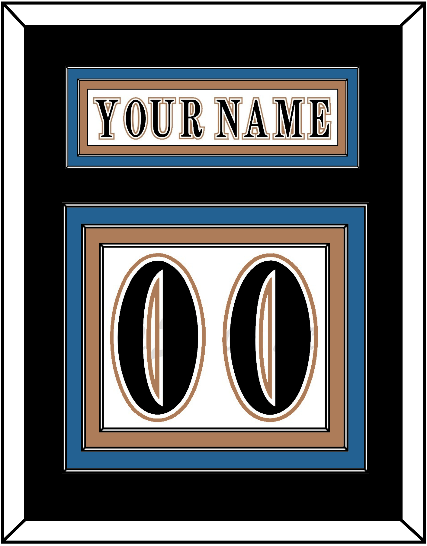 Washington Home White Jersey (1995 Through 2007) Nameplate & Numbers (From The Back Of The Jersey). Nameplate Is Double Mat Cut: Black Mat Over A Blue Mat. White Nameplate Mounted On A Bronze Mat. To Match The Jersey, Number Is Triple Mat Cut: Black Mat Over A Blue Mat Over A Bronze Mat. Black Number Mounted On A White Mat. White Frame.