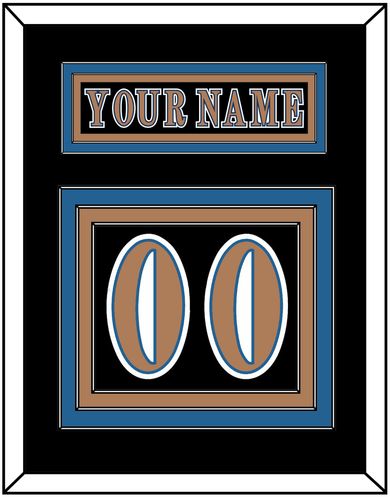 Washington Road Black Jersey (1997 Through 2007) Nameplate & Numbers (From The Back Of The Jersey). Nameplate Is Double Mat Cut: Black Mat Over A Blue Mat. Black Nameplate Mounted On A Bronze Mat. To Match The Jersey, Number Is Triple Mat Cut: Black Mat Over A Blue Mat Over A Bronze Mat. Bronze Number Mounted On A Black Mat. White Frame.