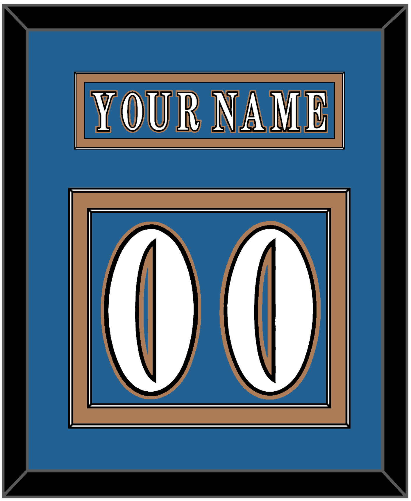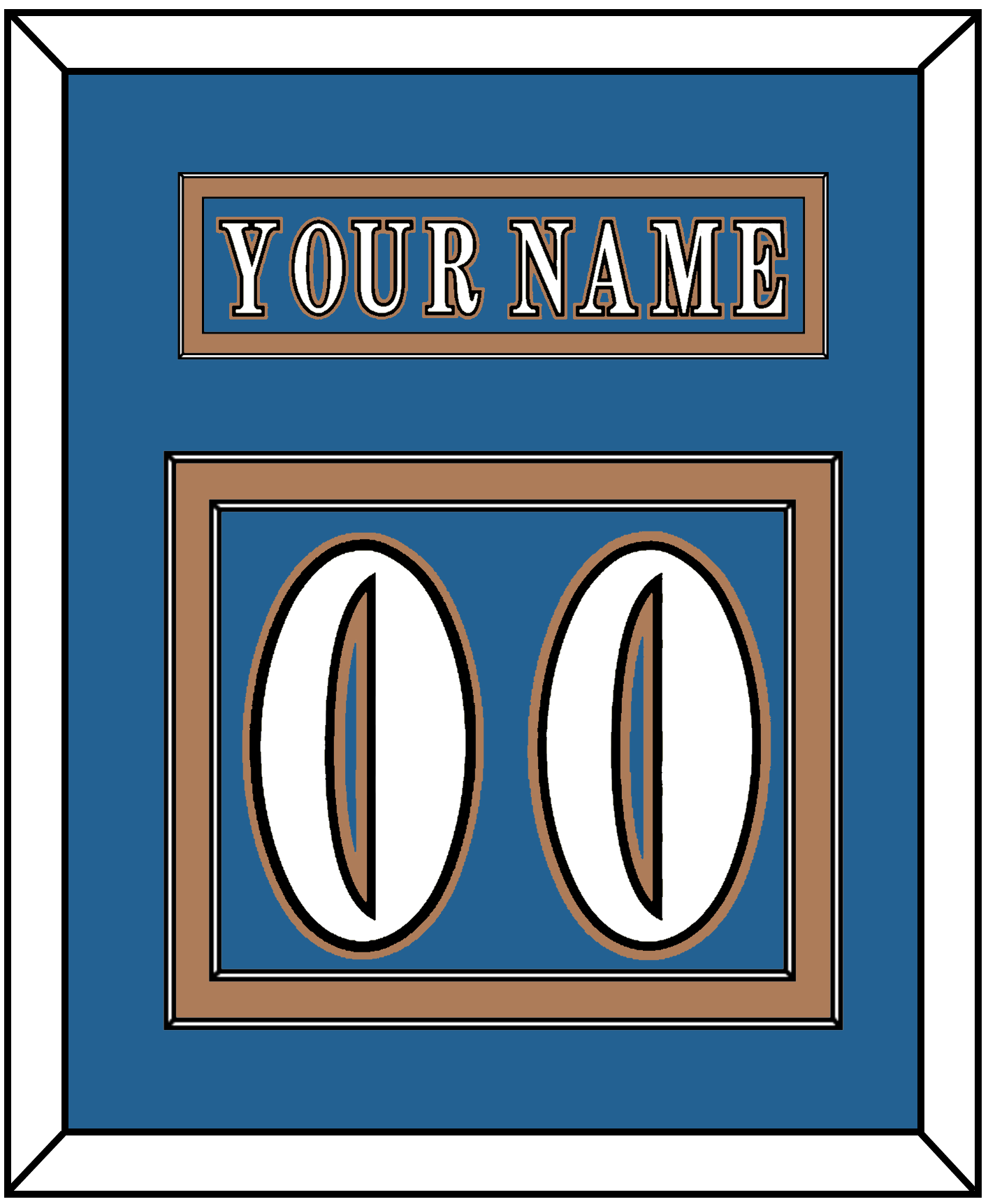 Washington Road Blue Jersey (1995 Through 2000) Nameplate & Numbers (From The Back Of The Jersey). Nameplate Is Single Mat Cut: Blue Mat With Blue Nameplate Mounted On A Bronze Mat. To Match The Jersey, Number Is Double Mat Cut: Blue Mat Over A Bronze Mat, White Number Mounted On A Blue Mat. Black Or White Frame.