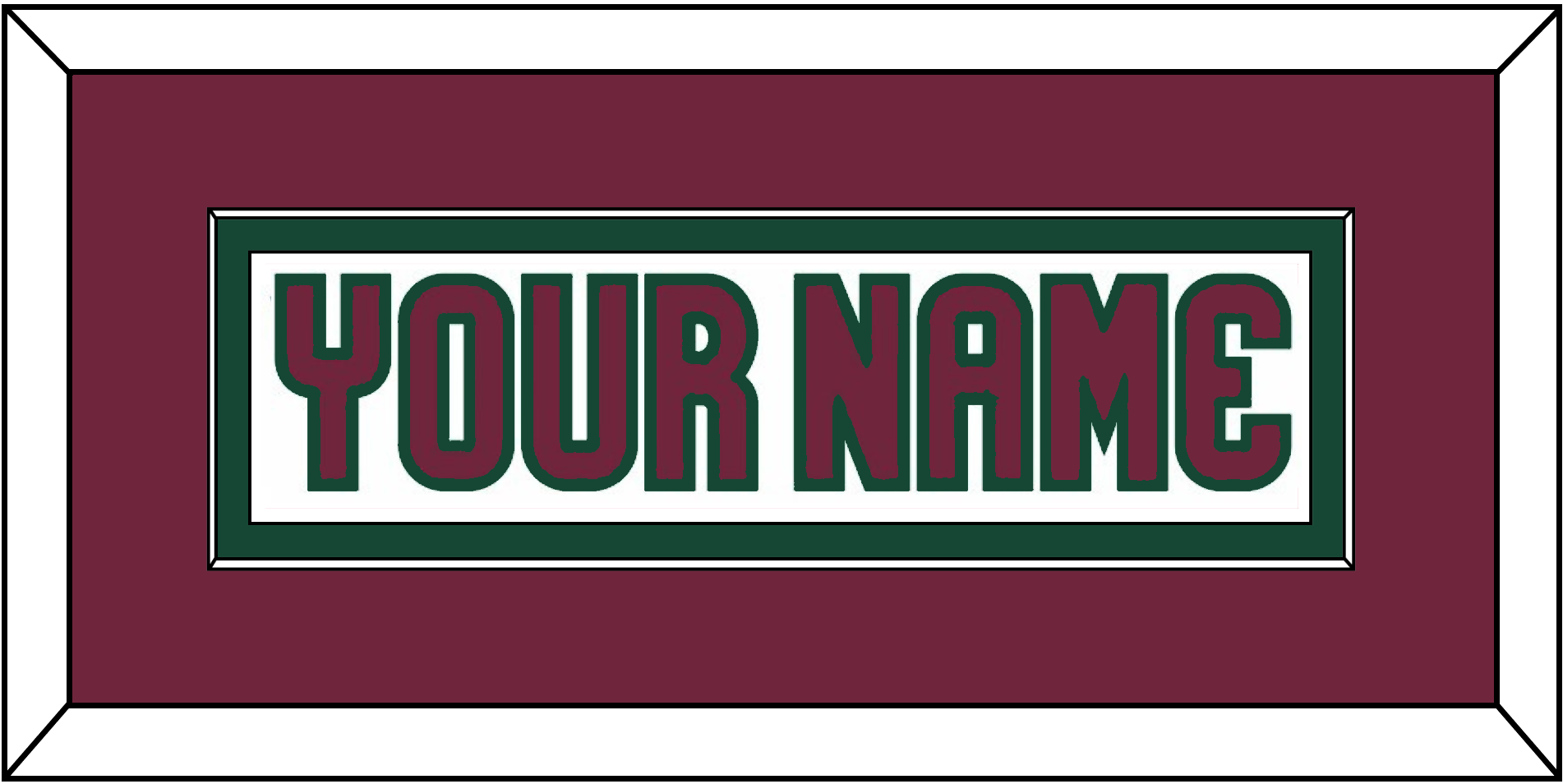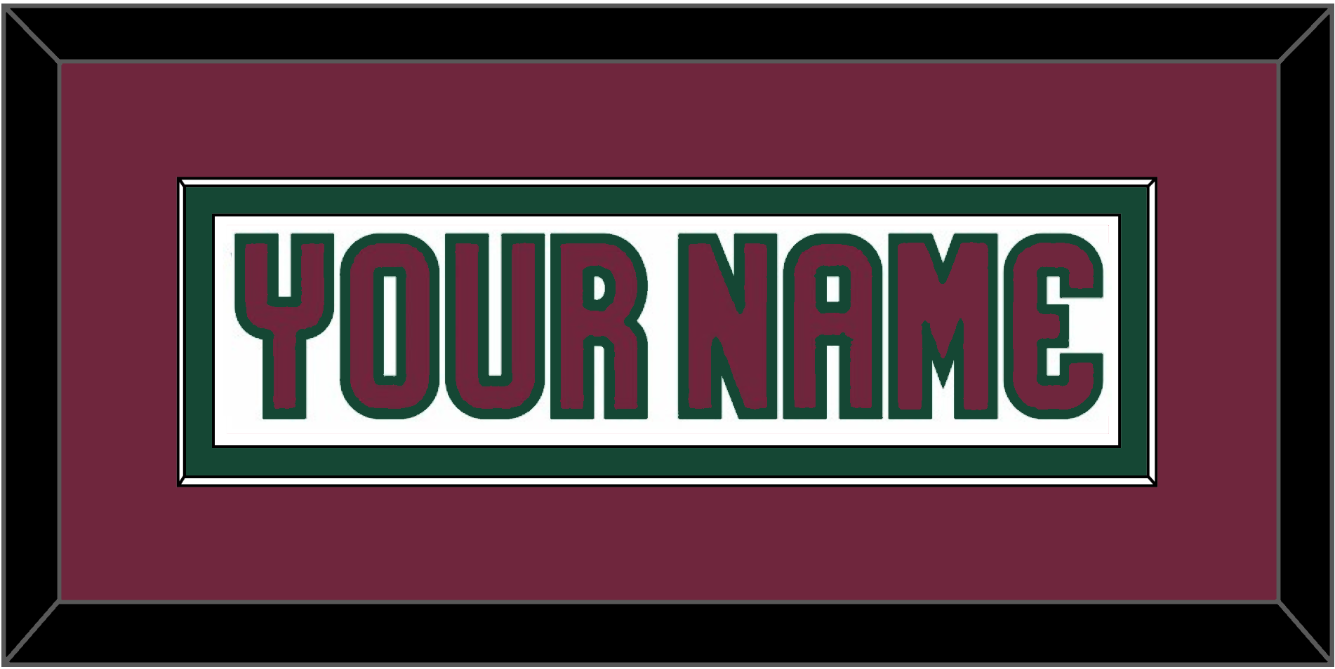 Arizona Road White Jersey Nameplate. Single Mat: Garnet Mat, White Nameplate Mounted On A Green Mat. Black Or White Frame.