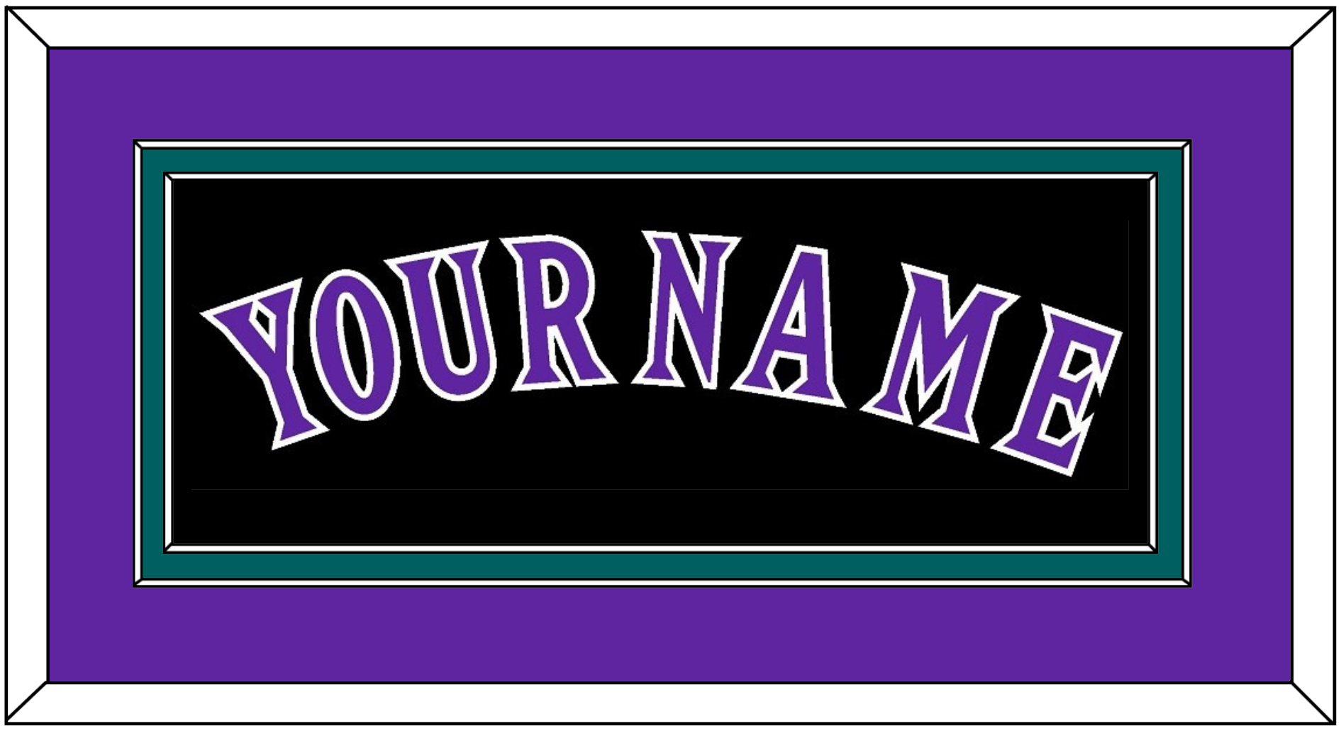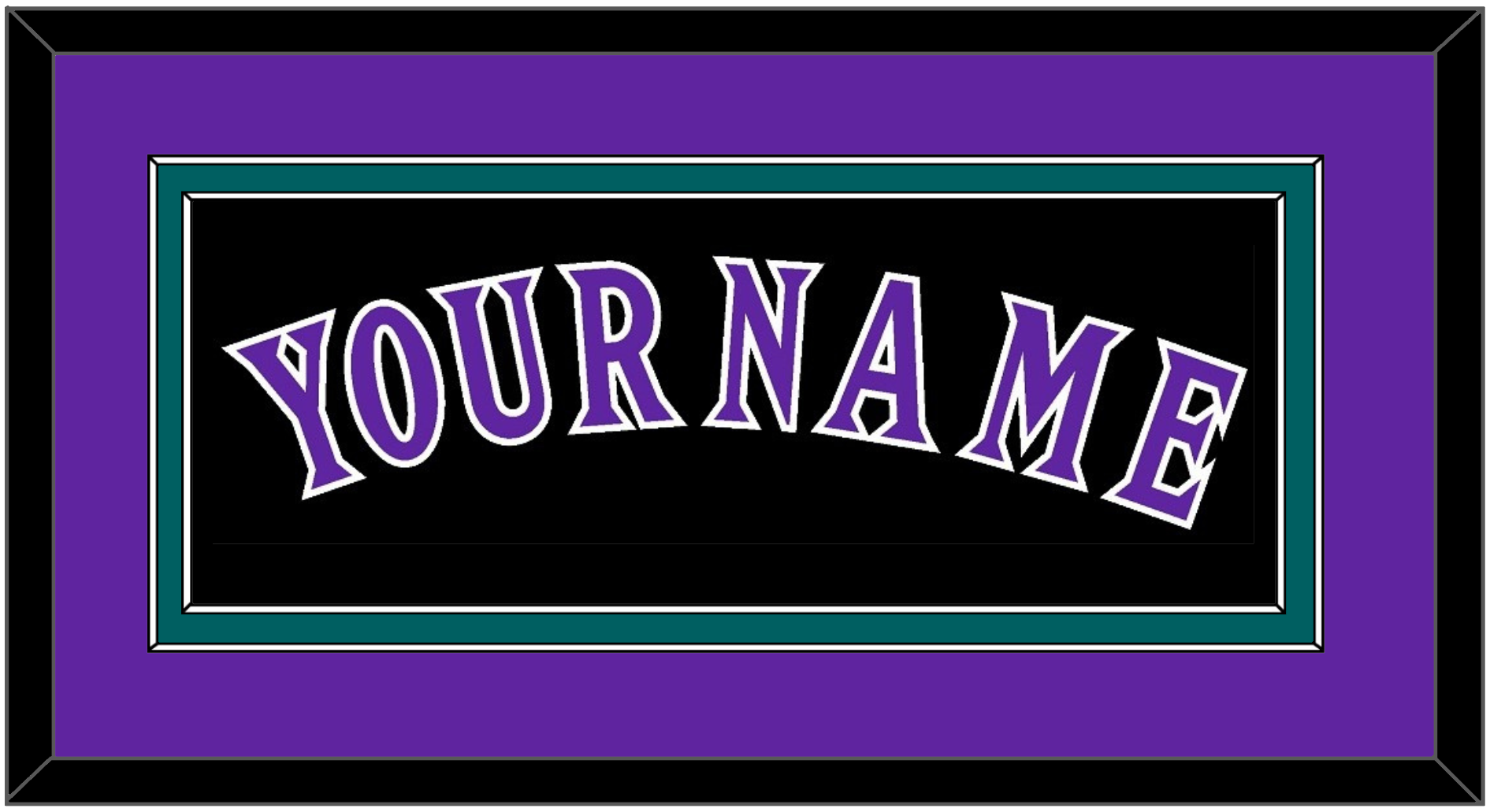 Arizona Alternate Black Jersey (2001 Through 2006) Name. Double Mat: Purple Mat Over A Teal Mat. Purple Name Mounted On A Black Mat. Black Or White Frame.