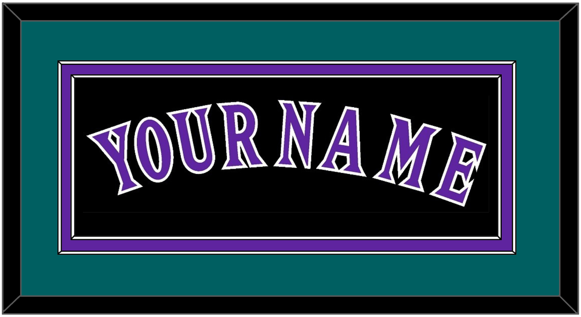 Arizona Alternate Black Jersey (2001 Through 2006) Name. Double Mat: Teal Mat Over A Purple Mat. Purple Name Mounted On A Black Mat. Black Or White Frame.