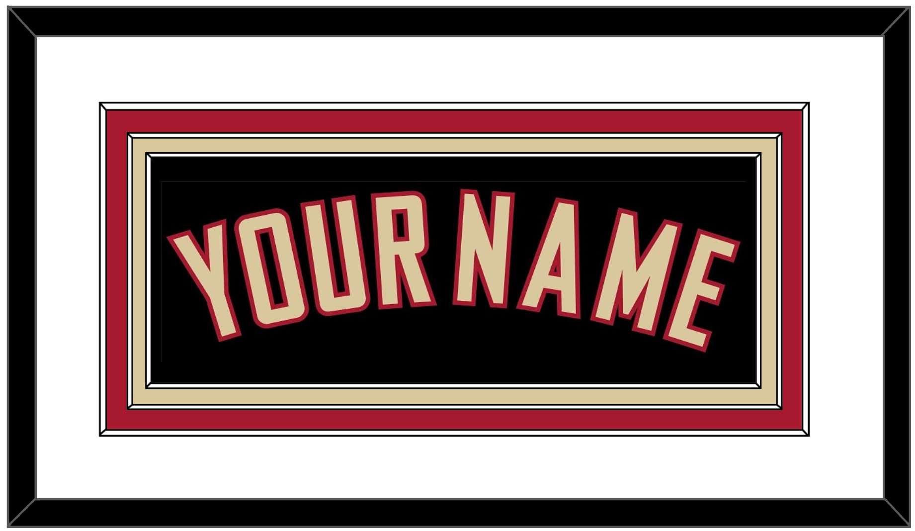Arizona Alternate Black Jersey (2020 Through 2023) Name. Triple Mat: White Mat Over A Red Mat Over A Tan Mat. Tan Name Mounted On A Black Mat. Black Frame.