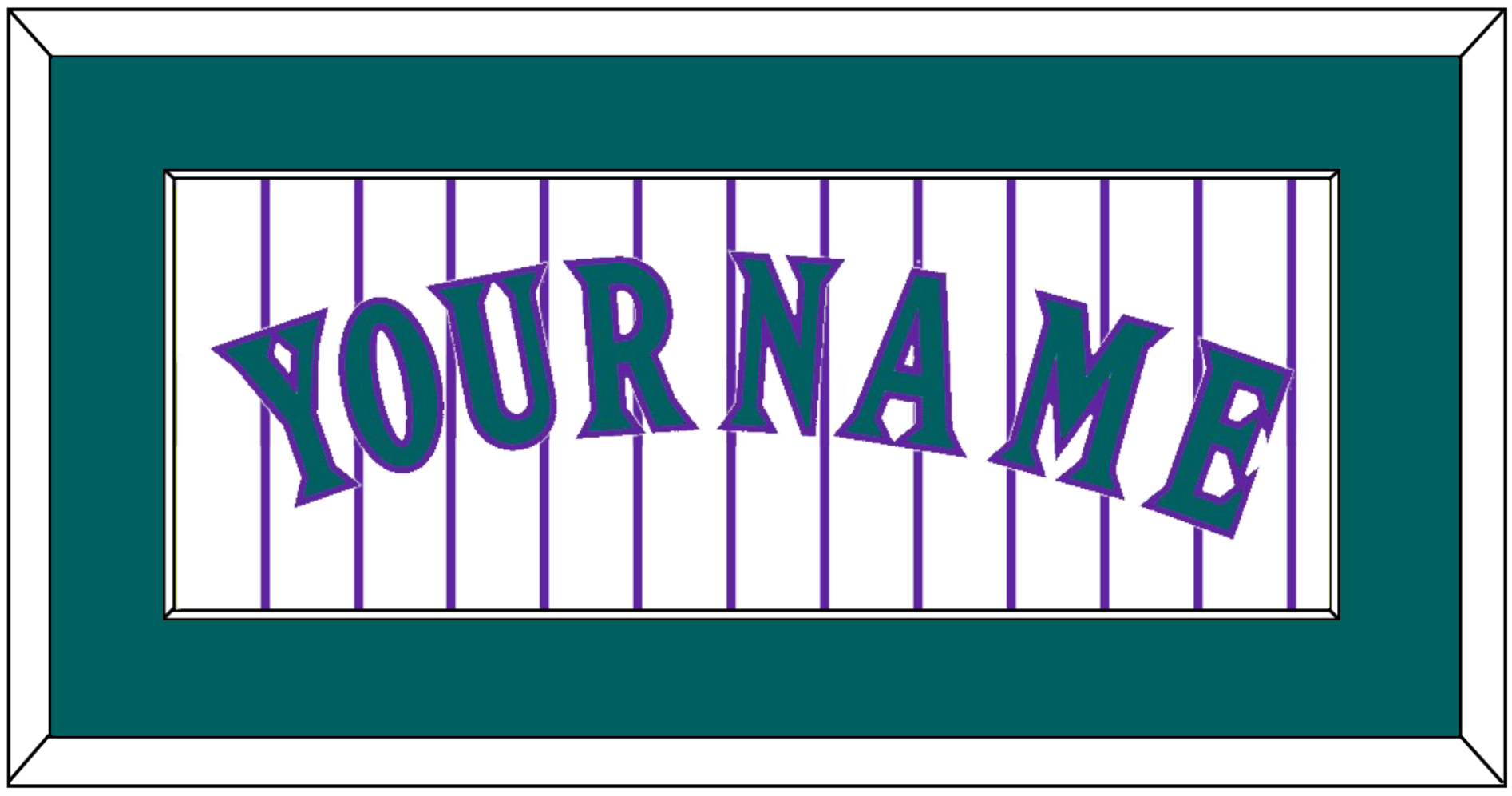 Arizona Alternate Home White Pinstripes Jersey (1998 Through 2006) Name. Single Mat: Teal Mat With Purple Name Mounted On Pinstripes. White Or Black Frame.