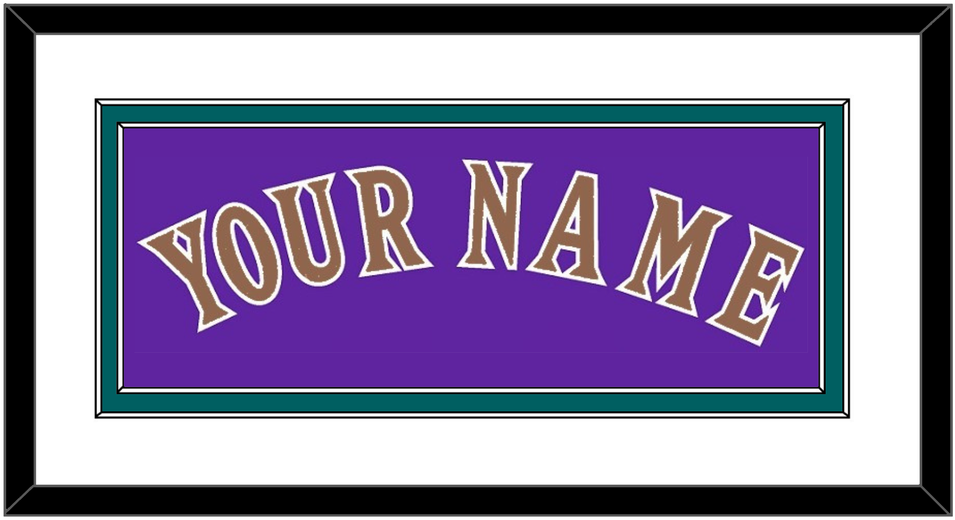 Arizona Alternate Purple Jersey (1998 Through 2002) Name. Double Mat: White Mat Over A Teal Mat. Copper Name Mounted On A Purple Mat. Black Frame.