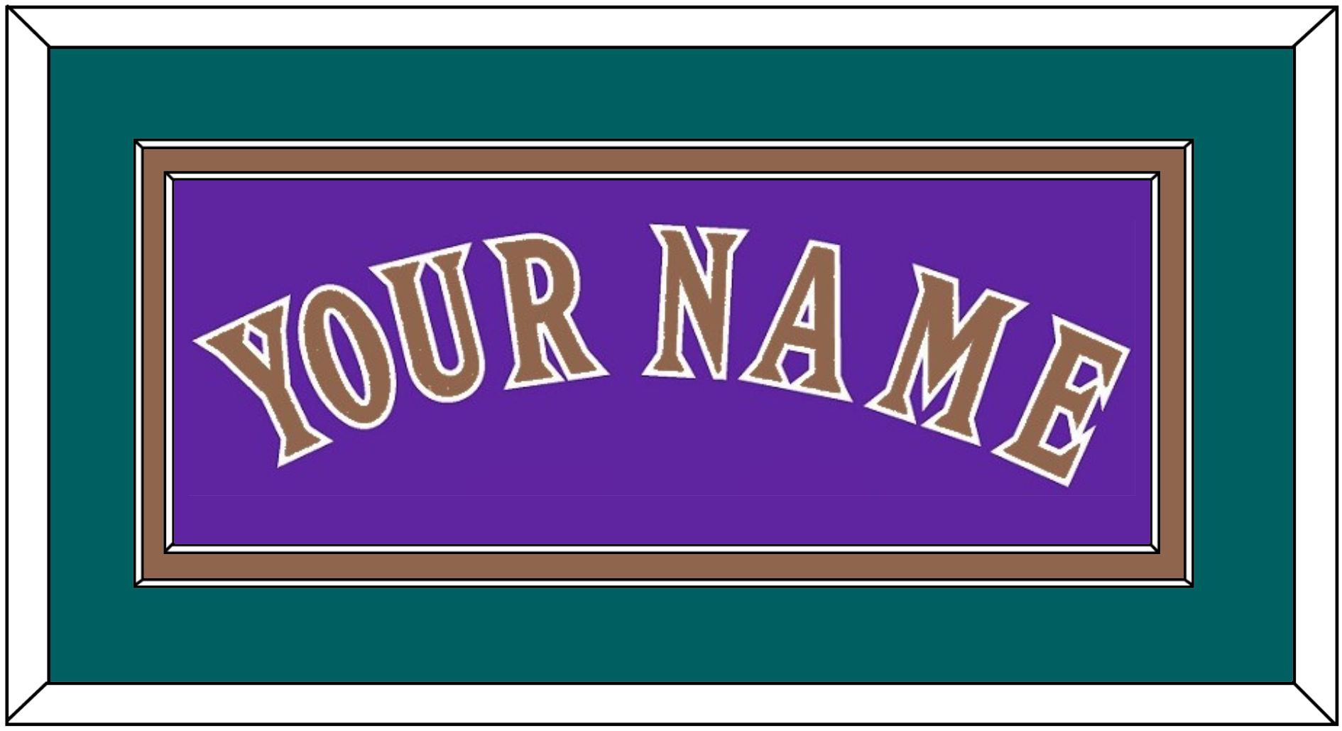 Arizona Alternate Purple Jersey (1998 Through 2002) Name. Double Mat: Teal Mat Over A Copper Mat. Copper Name Mounted On A Purple Mat. Black Or White Frame.