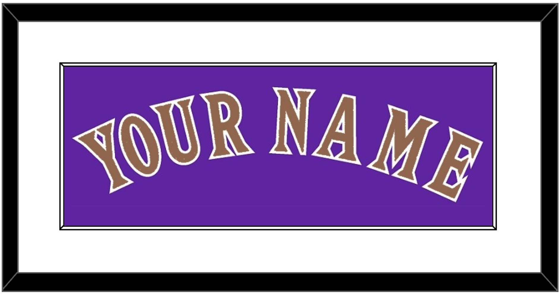 Arizona Alternate Purple Jersey (1998 Through 2002) Name. Single Mat: White Mat With Copper Name Mounted On A Purple Mat. Black Frame.