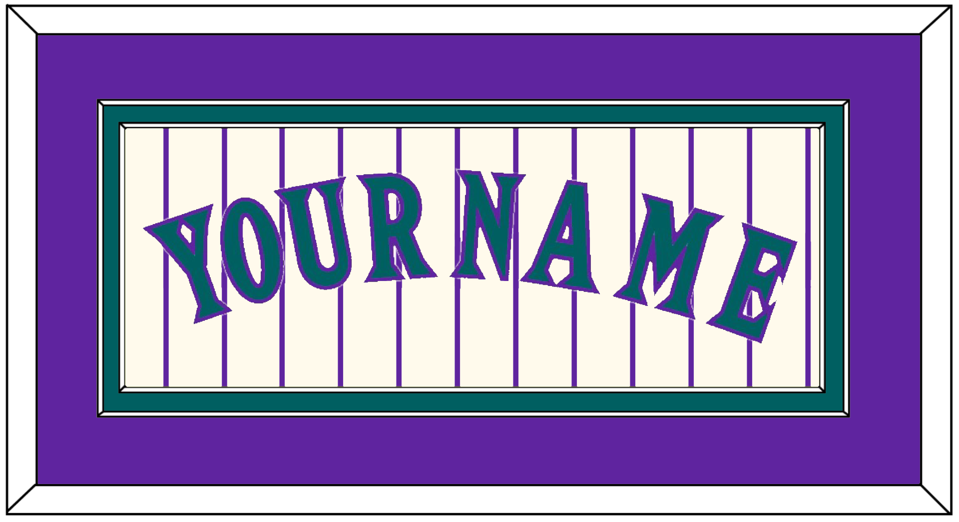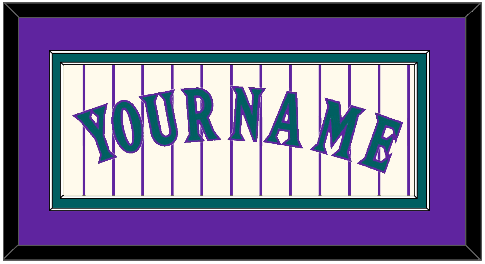 Arizona Alternate Home Off-White Pinstripes Jersey (2001 Through 2006) Name. Double Mat: Purple Mat Over A Teal Mat. Purple Name Mounted On Pinstripes. White Or Black Frame.