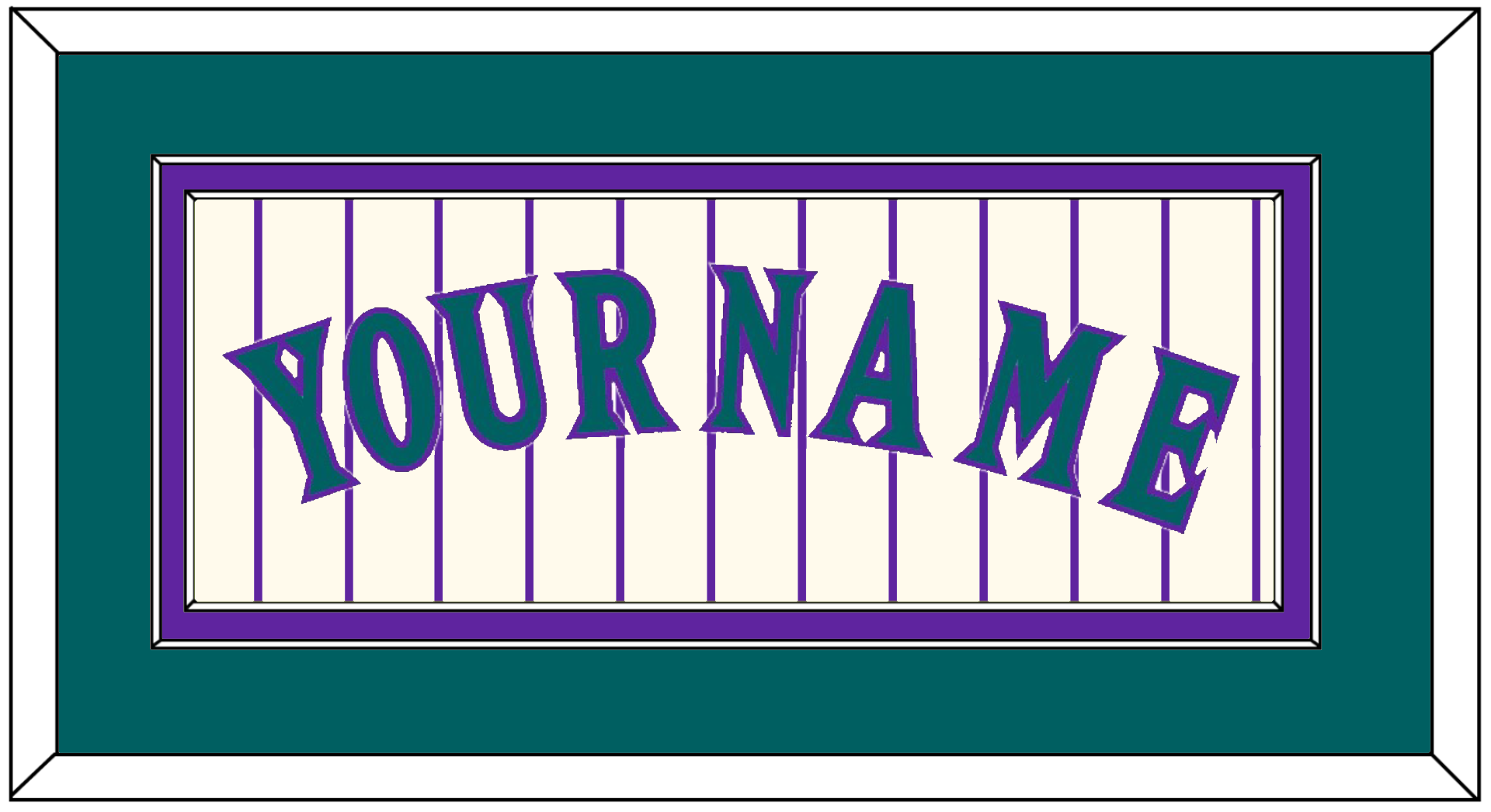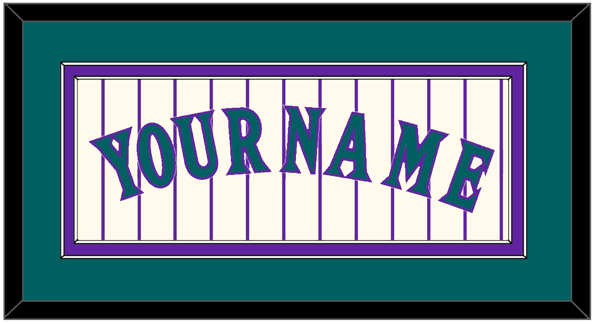 Arizona Alternate Home Off-White Pinstripes Jersey (2001 Through 2006) Name. Double Mat: Teal Mat Over A Purple Mat. Purple Name Mounted On Pinstripes. White Or Black Frame.