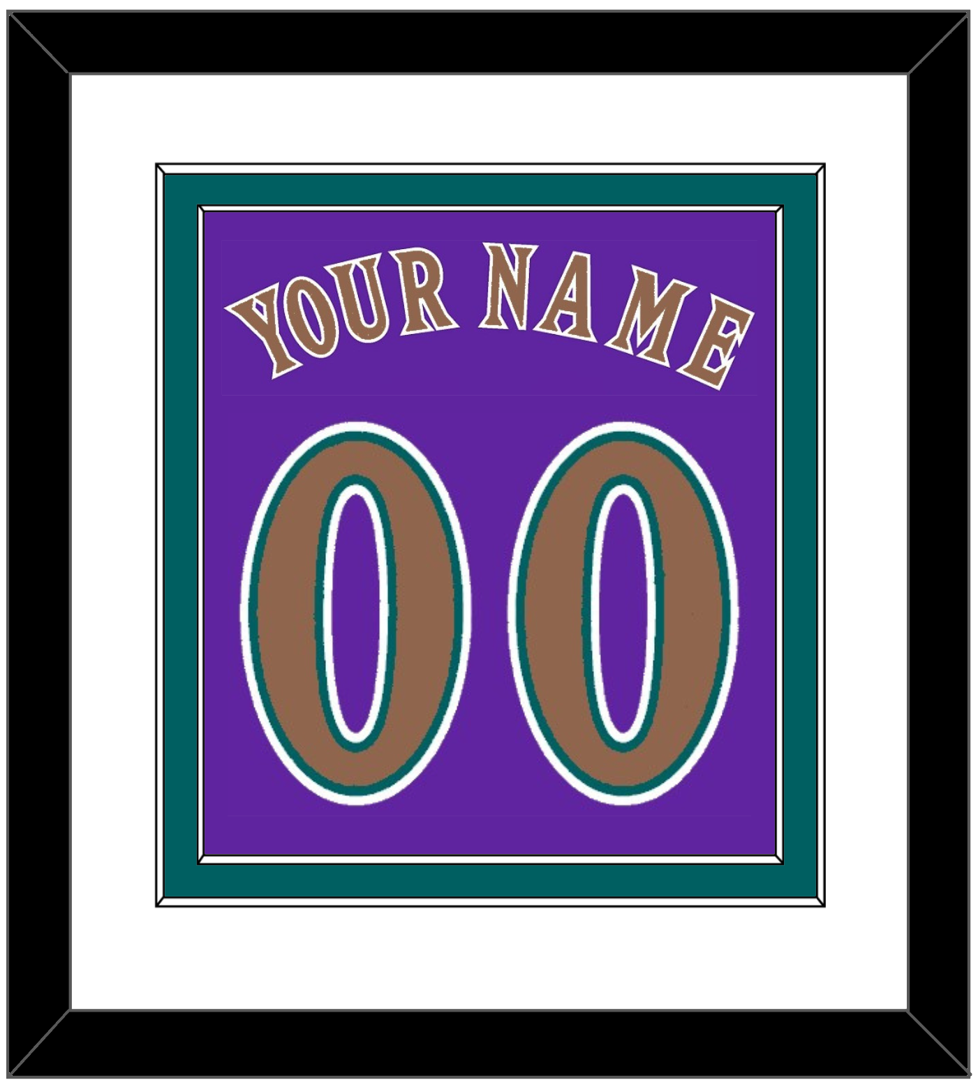Arizona Alternate Purple Jersey (1998 Through 2002) Name & Number. Double Mat: White Mat Over A Teal Mat. Copper Name And Number Mounted On A Purple Mat. Black Frame.