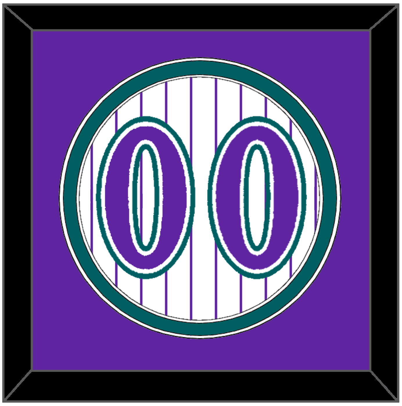 Arizona Alternate Home White Pinstripe Jersey (1998 Through 2006) Number. Double Mat: Purple Mat Over A Teal Mat. Purple Numbers Mounted On Pinstripe Background. White Or Black Frame.