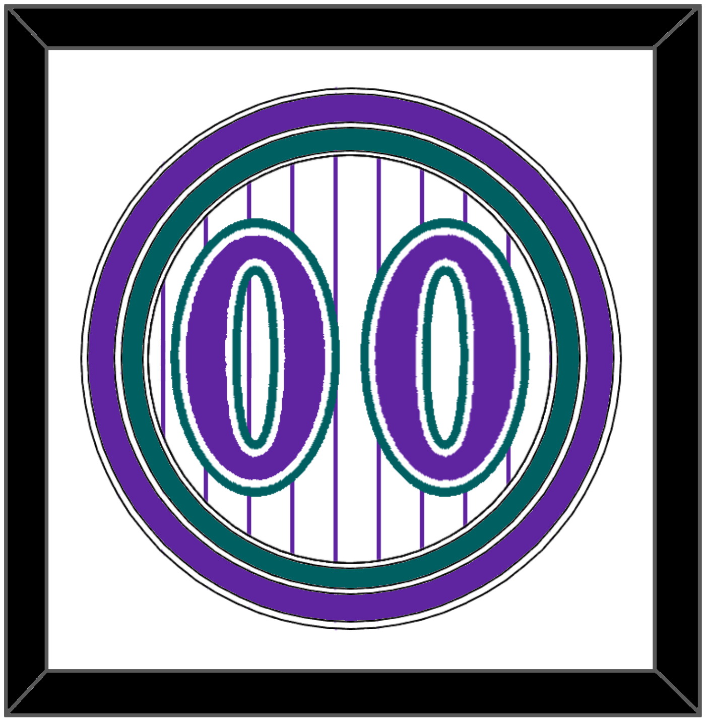 Arizona Alternate Home White Pinstripe Jersey (1998 Through 2006) Number. Triple Mat: White Mat Over A Purple Mat Over A Teal Mat. Purple Numbers Mounted On Pinstripe Background. Black Frame.