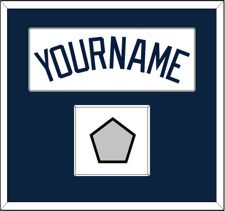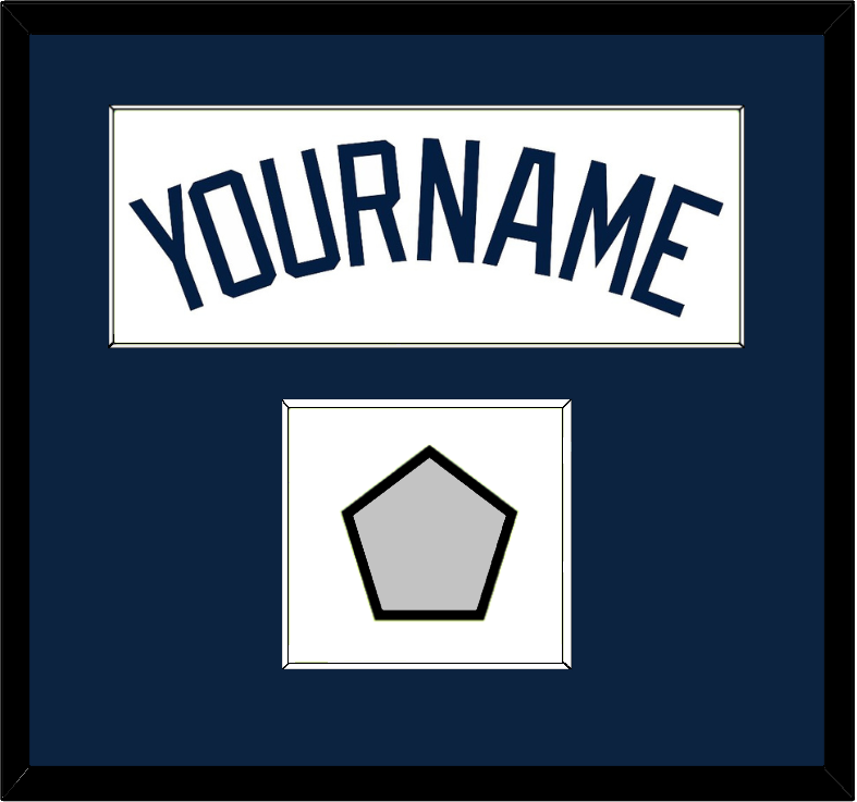 Atlanta Home White Jersey Name With 2021 World Series Champions Patch. Single Mat Cut: Blue Mat With Blue Name & Patch Mounted On A White Mat. White Or Black Frame.