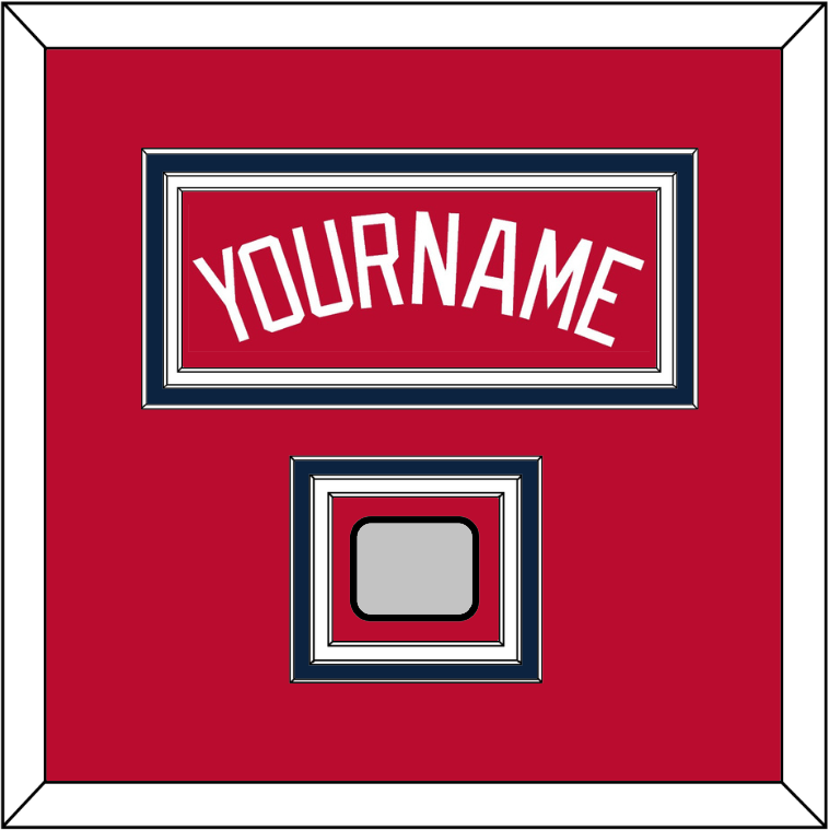 Atlanta Alternate Home Red Jersey Name With 2021 World Series Jersey Patch. Triple Mat Cut: Red Mat Over A Blue Mat Over A White Mat. White Name & Patch Mounted On A Red Mat. White Or Black Frame.