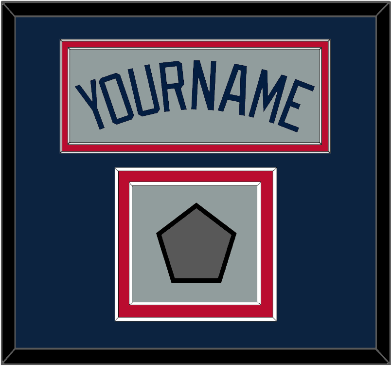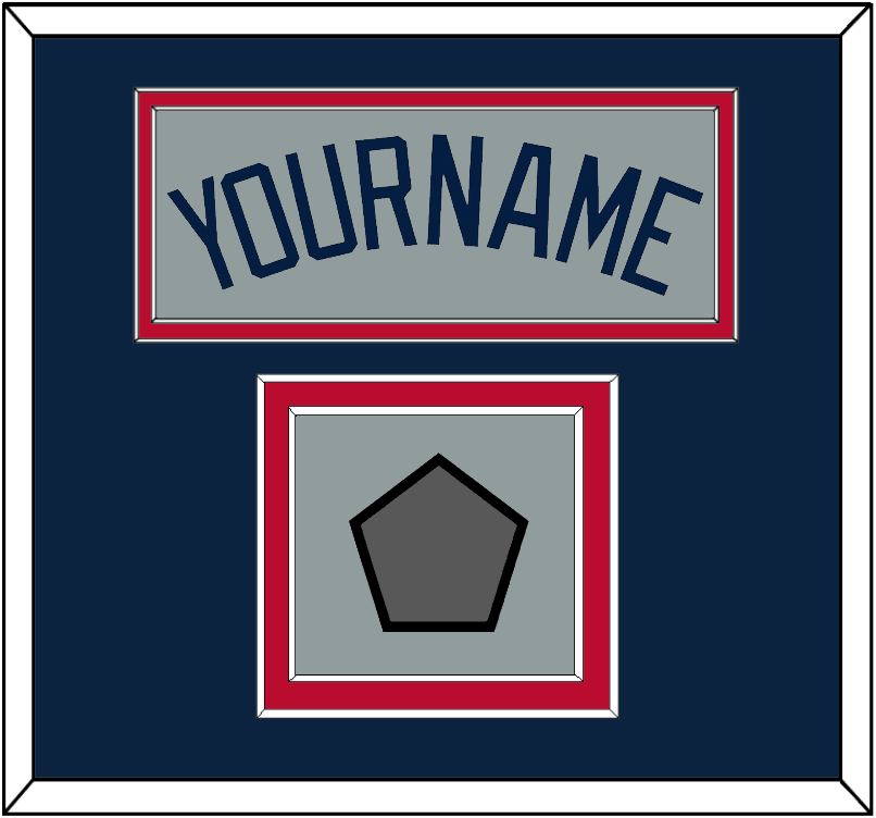 Atlanta Road Gray Jersey Name With 2021 World Series Jersey Patch. Double Mat Cut: Blue Mat Over A Red Mat. Blue Name & Patch Mounted On A Gray Mat. White Or Black Frame.