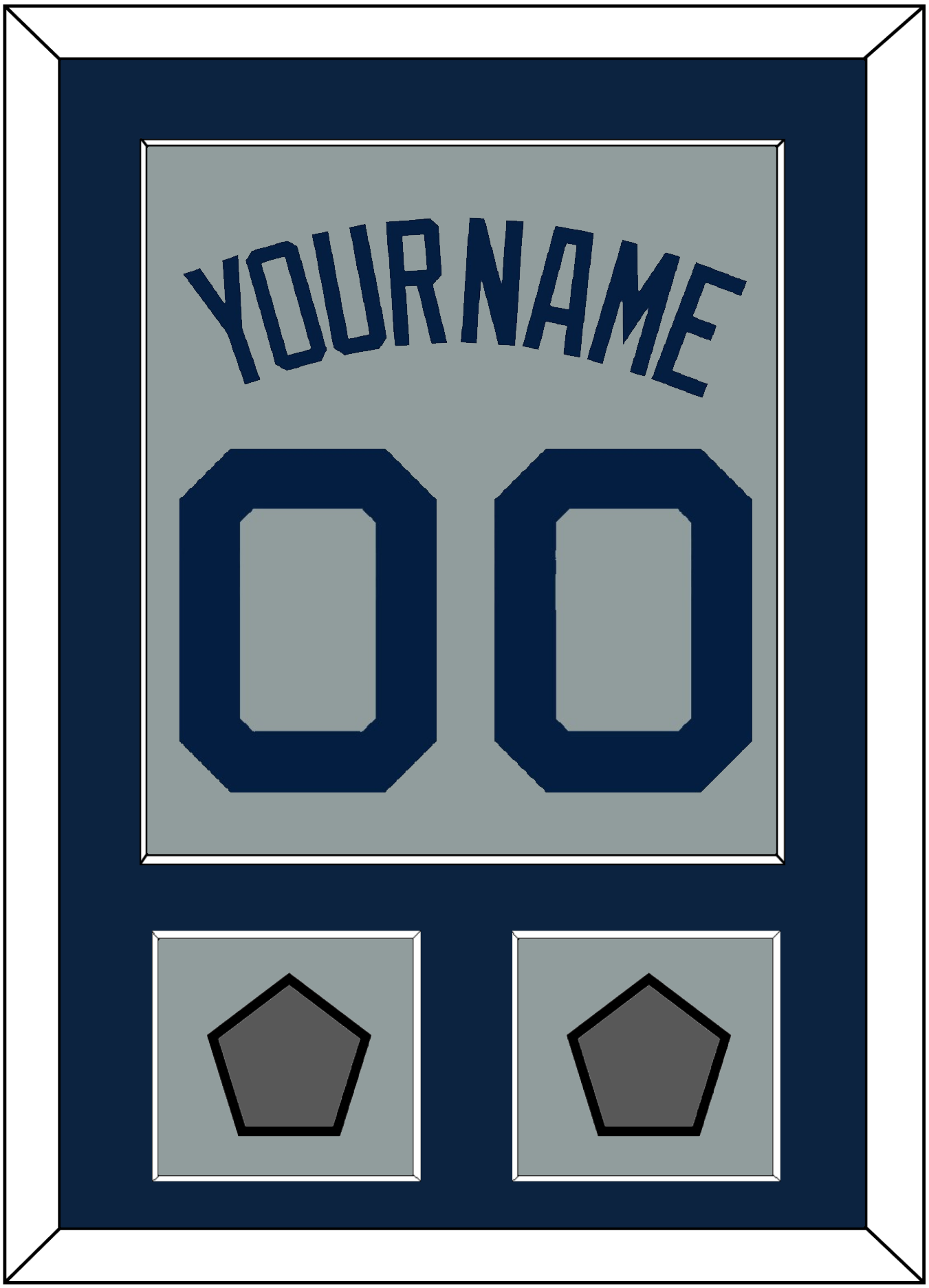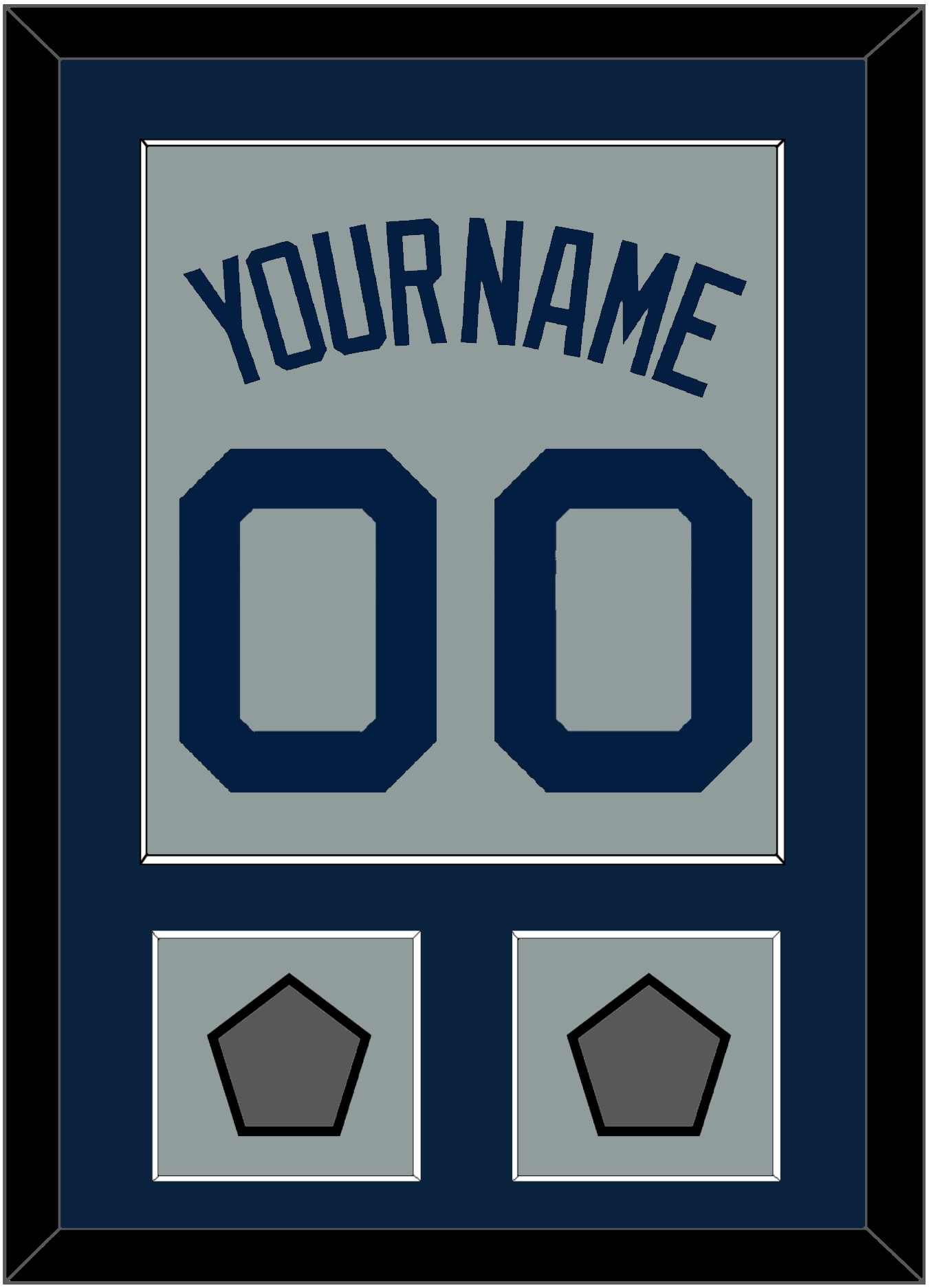 Boston Road Gray Jersey (2009 Through 2013) Name & Number With 2004 & 2007, 2007 & 2013 Or 2013 & 2018 World Series Champions Patches. Single Mat Cut: Blue Mat With Blue Name, Number & Patch Mounted On A Gray Mat. White Or Black Frame.