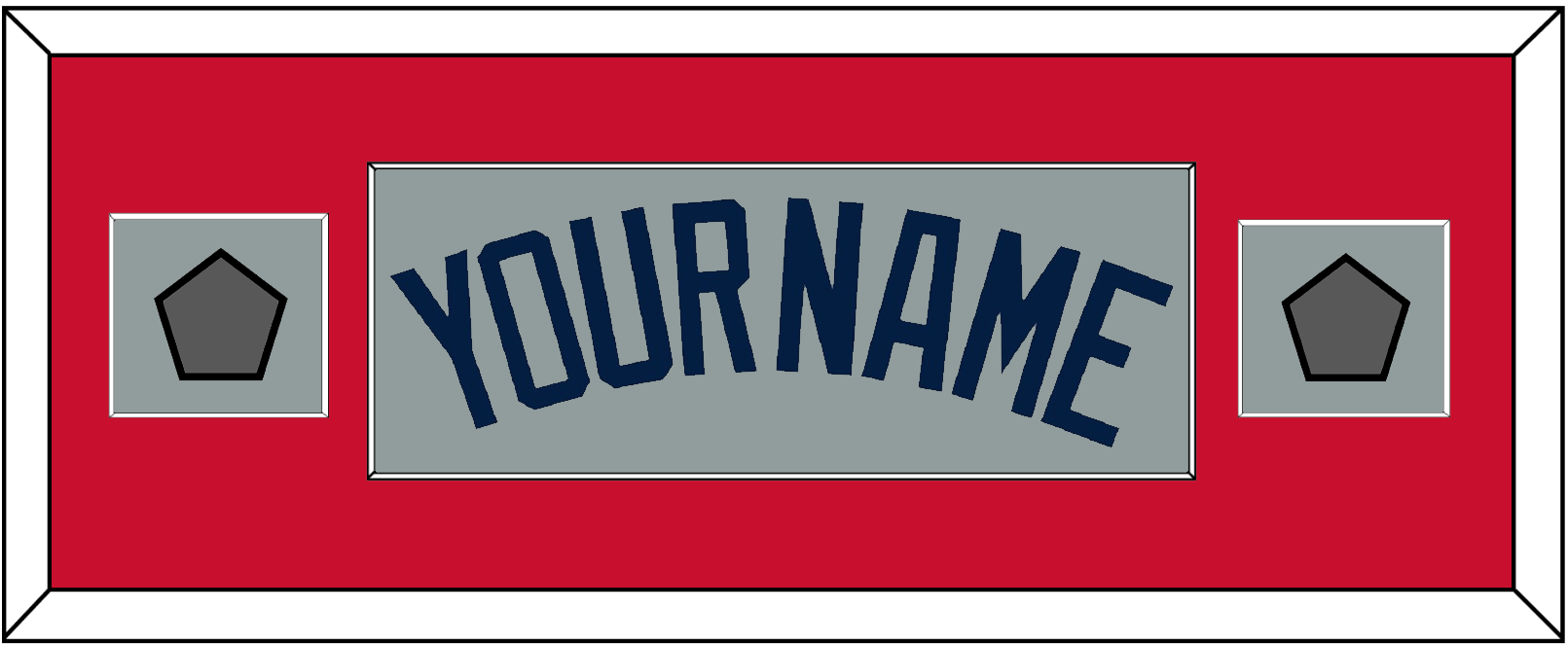 Boston Road Gray Jersey (2009 Through 2013) Name With Two World Series Champions Patches (2004 & 2007, 2007 & 2013 Or 2013 & 2018). Single Mat Cut: Red Mat With Blue Name & Patches Mounted On A Gray Mat. White Or Black Frame.