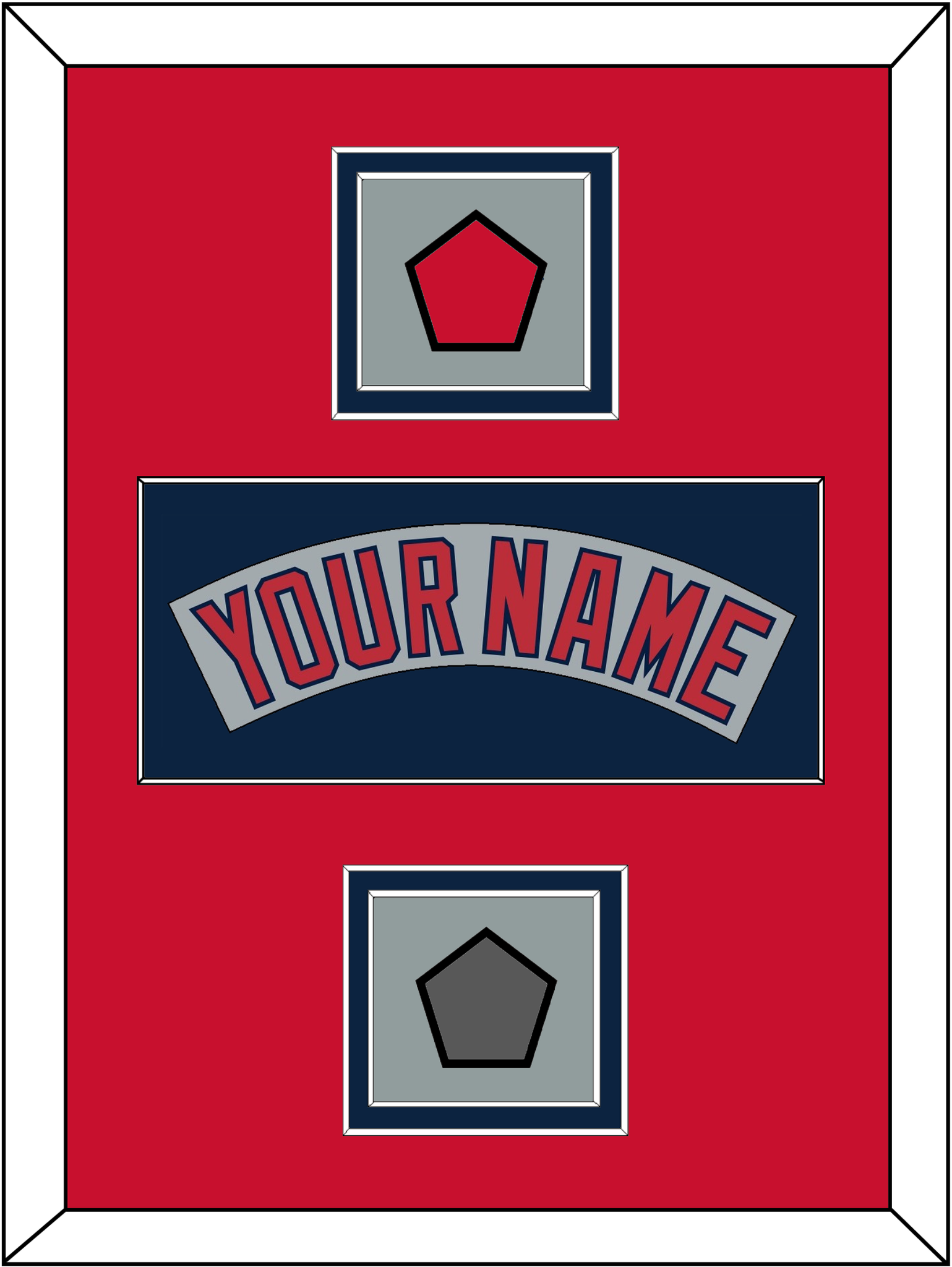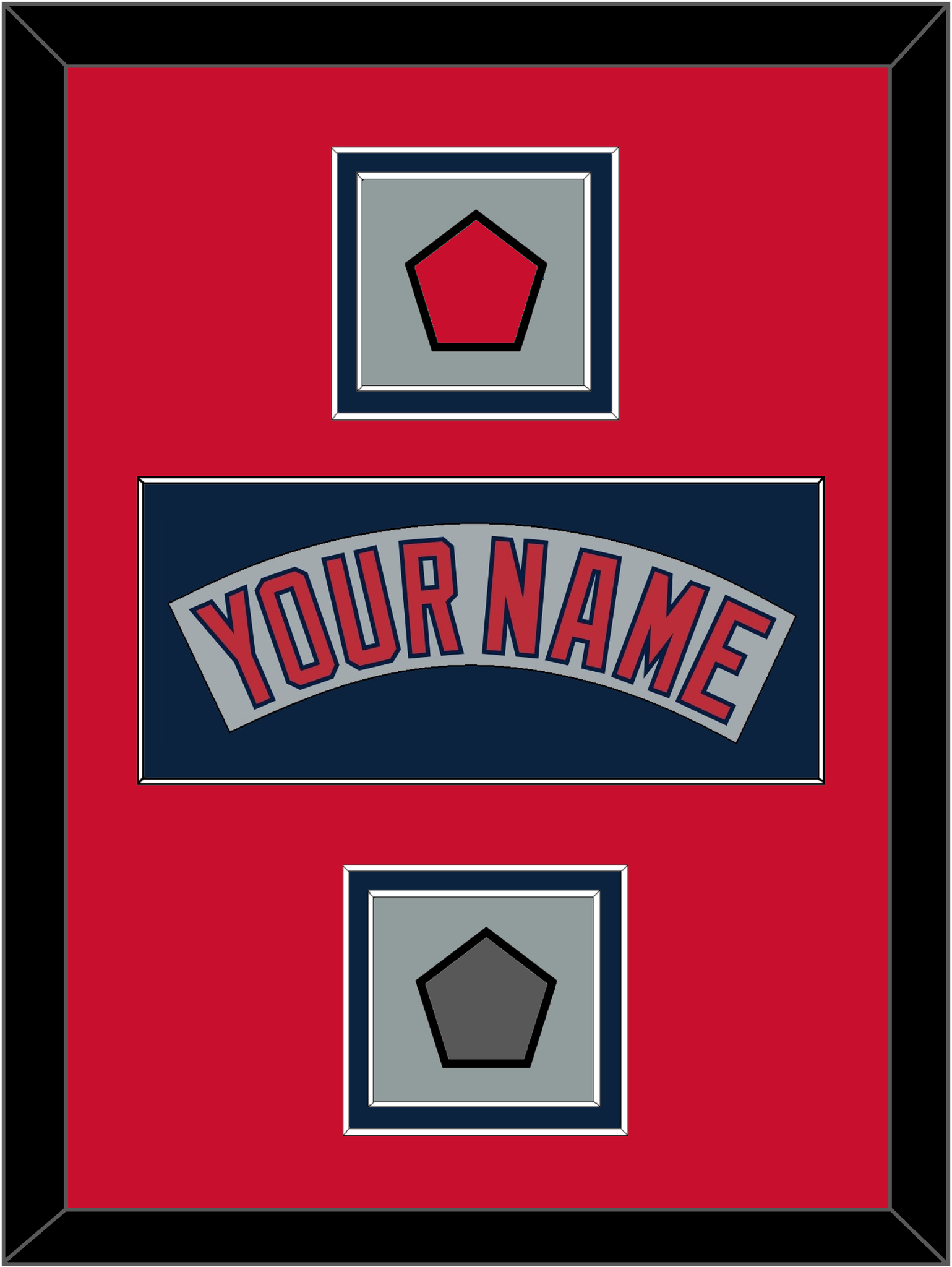 Boston Road Gray Jersey (1992 Through 2008) Nameplate With Logo Patch From Sleeve & World Series Champions Patch (2004, 2007, 2013 Or 2018). Nameplate Is Single Mat Cut: Red Mat With Nameplate Mounted On A Blue Mat. To Match The Jersey, The Patches Are Double Mat Cut: Red Mat Over A Blue Mat With Patches Mounted On A Gray Mat. White Or Black Frame.