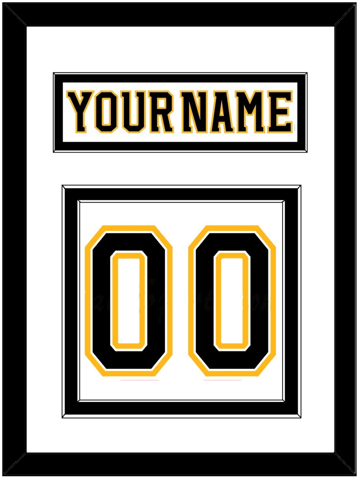 Boston Road White Jersey (2007 Through 2017) Nameplate & Numbers (From The Back Of The Jersey).  Nameplate Is Single Mat Cut:  White Mat With White Nameplate Mounted On A Black Mat.  To Match The Jersey, Number Is Double Mat Cut:  White Mat Over A Black Mat, Black Number Mounted On A White Mat.  Black Frame.