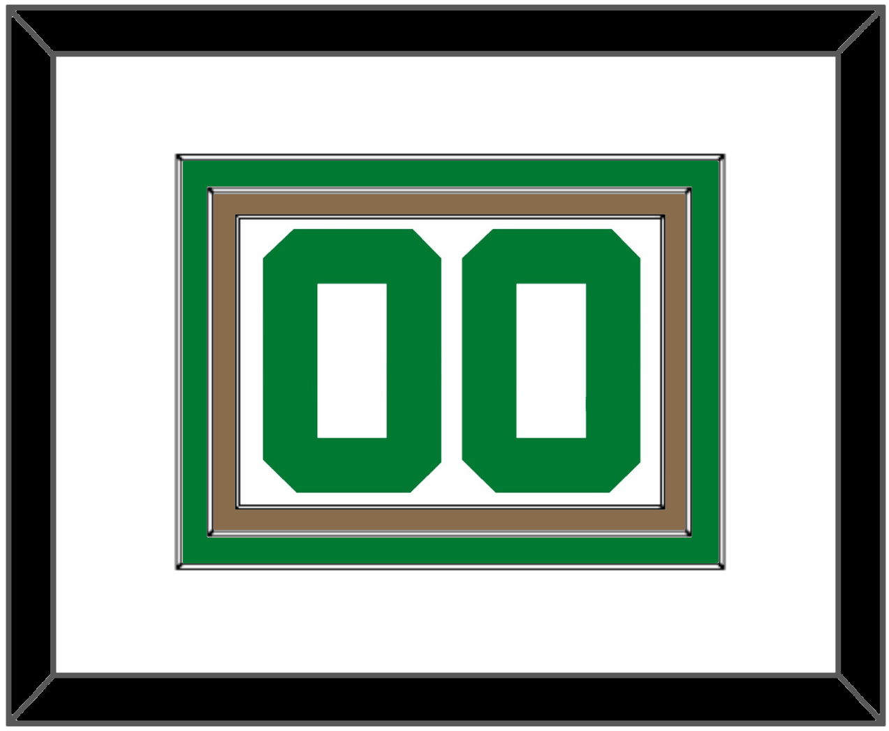 Boston Home White Jersey (1972 Through 2018) Number. Triple Mat Cut: White Mat Over A Green Mat Over A Gold Mat. Green Number Mounted On White Mat. Black Frame.